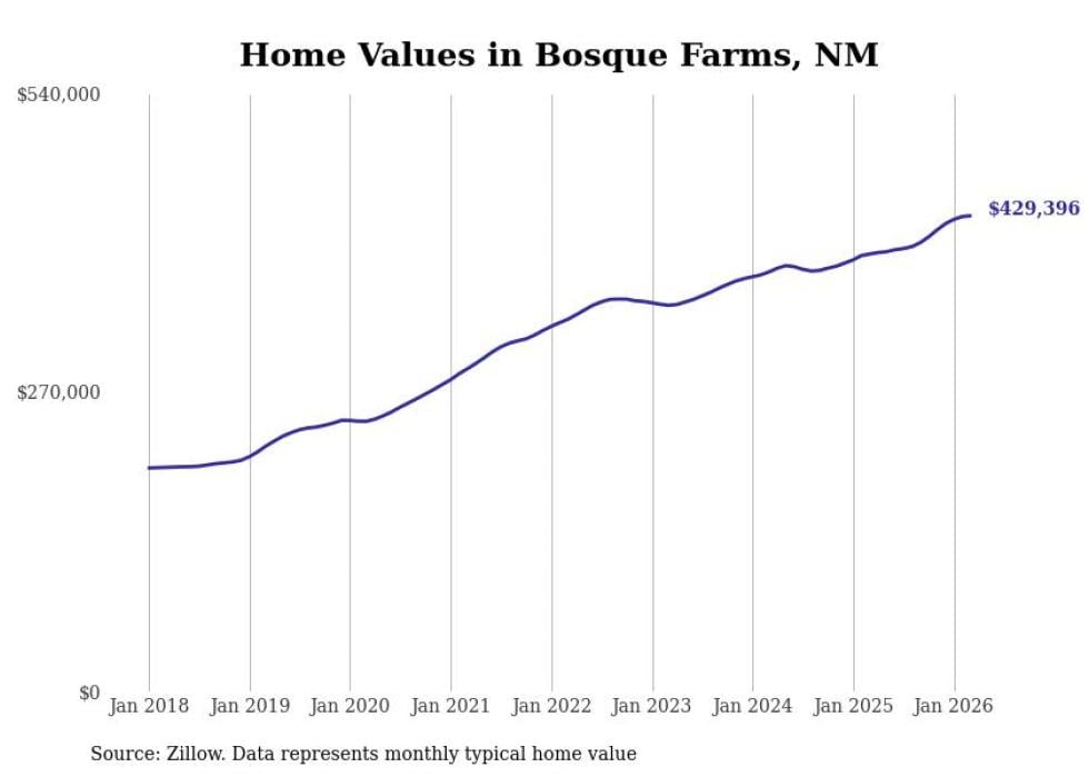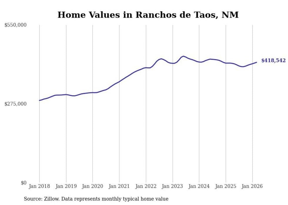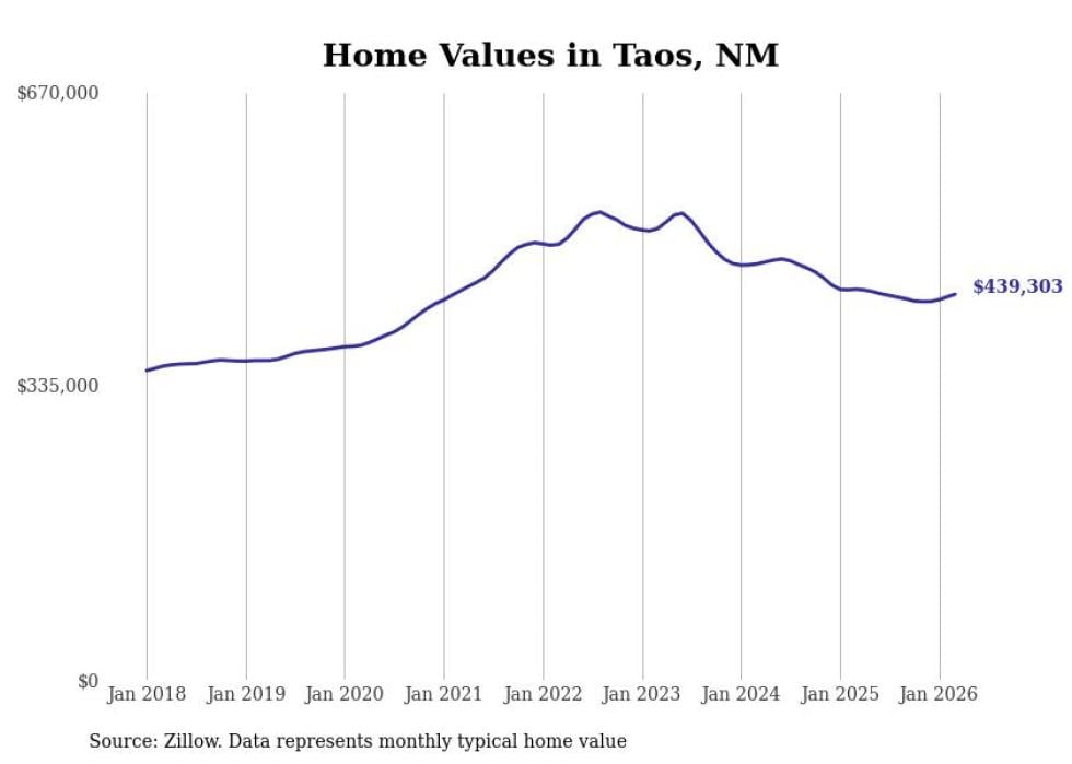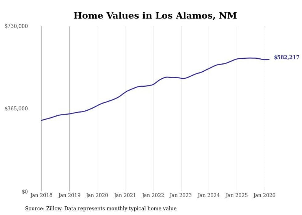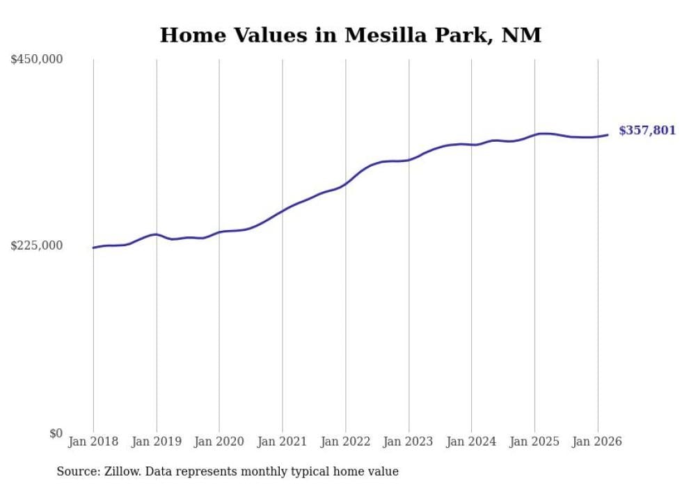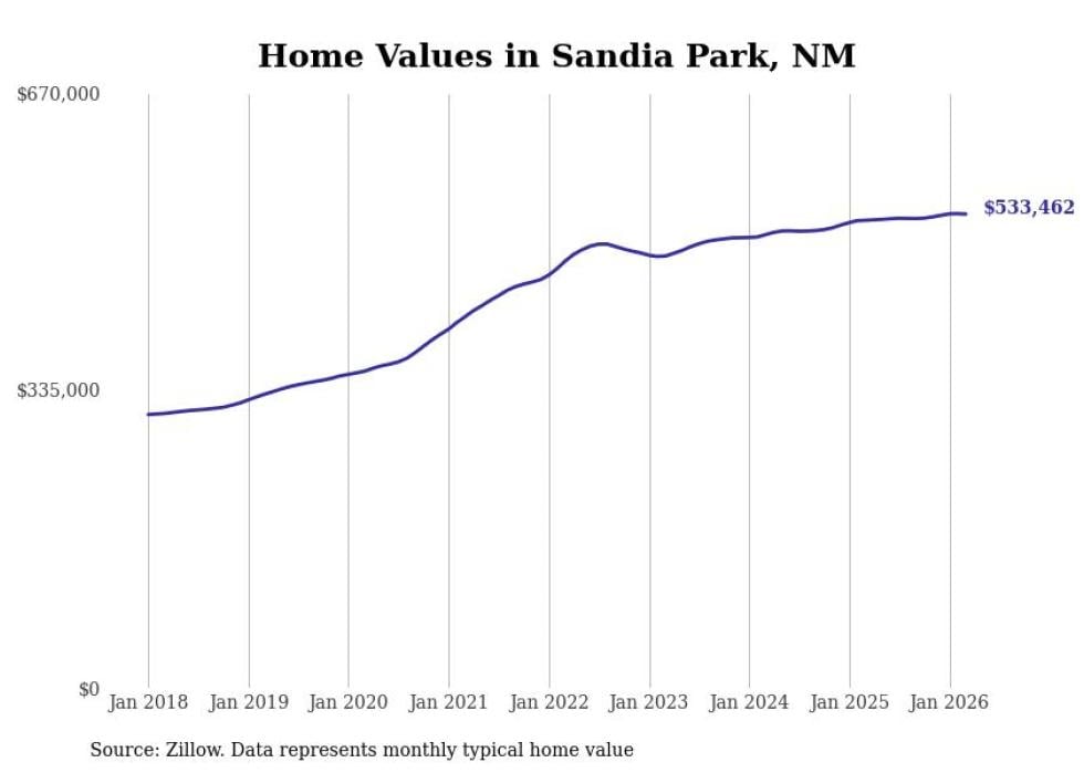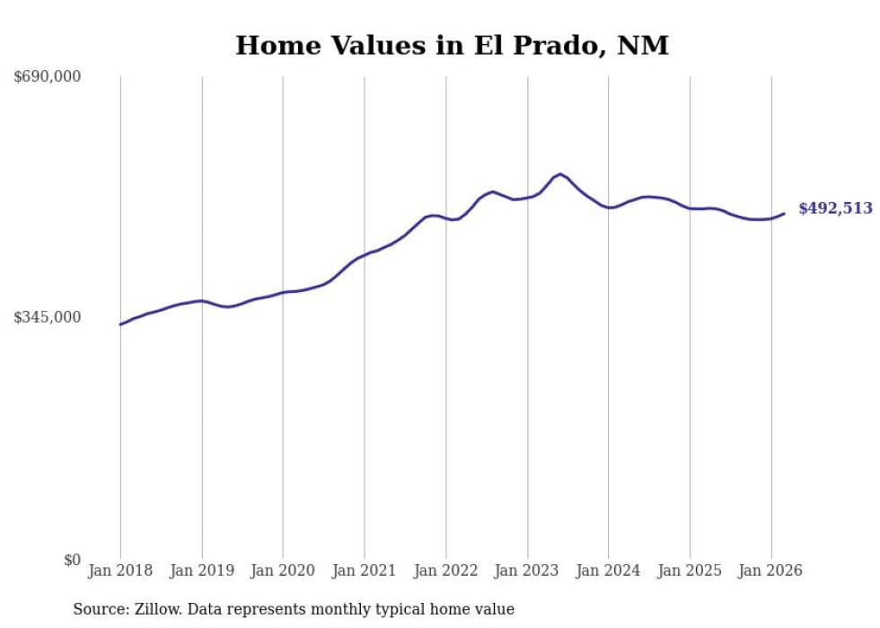 compiled a list of cities with the most expensive homes in New Mexico using data from . Cities are ranked by the Zillow Home Values Index for all homes as of February 2026. The charts in this story were created automatically using .