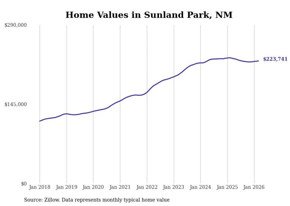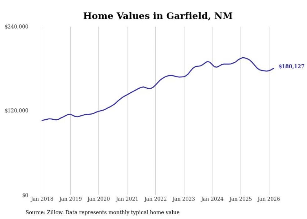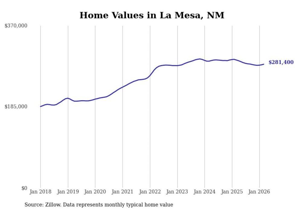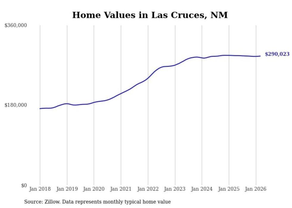 compiled a list of cities with the most expensive homes in the Las Cruces metro area using data from . Charts show the monthly typical home value since January 2018. All 10 cities and towns with data available were included in the list.