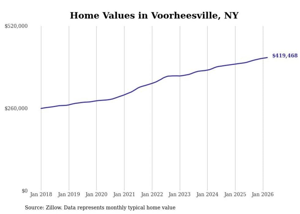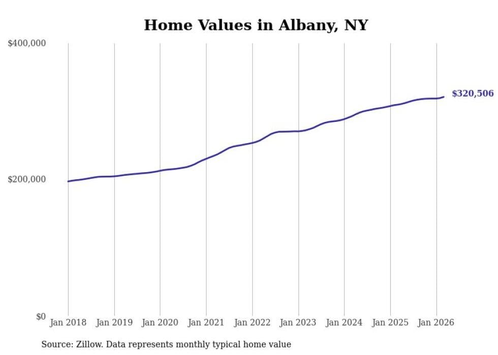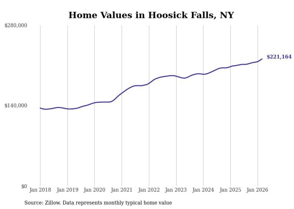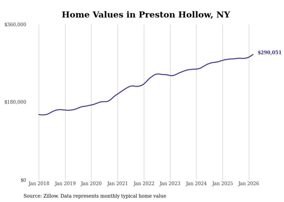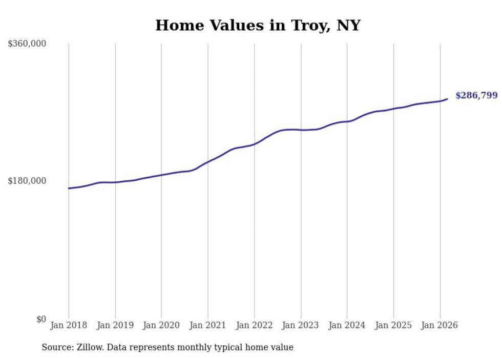 compiled a list of cities with the most expensive homes in the Albany-Schenectady-Troy, NY metro area using data from . Charts show the monthly typical home value since January 2018.