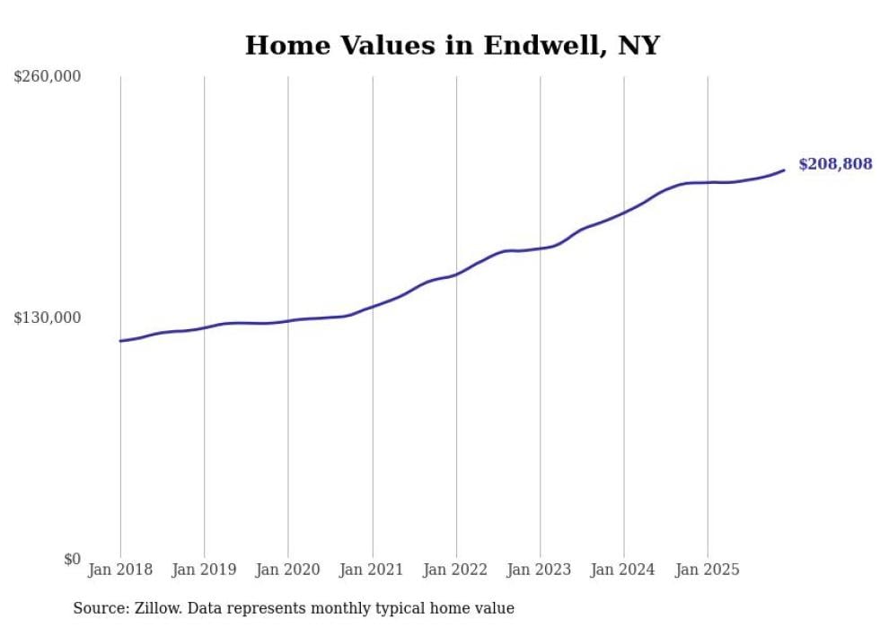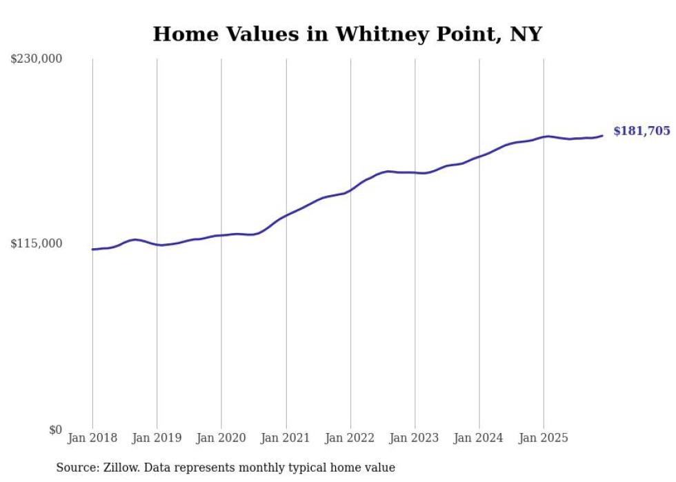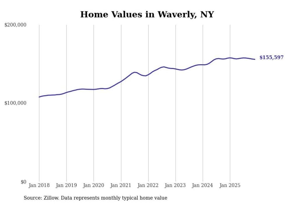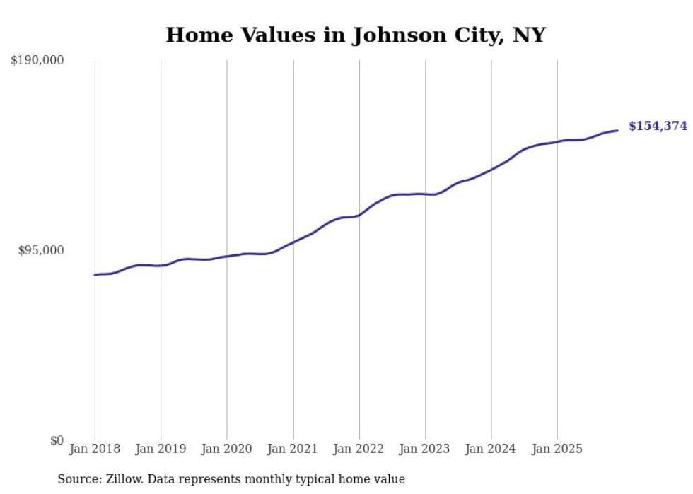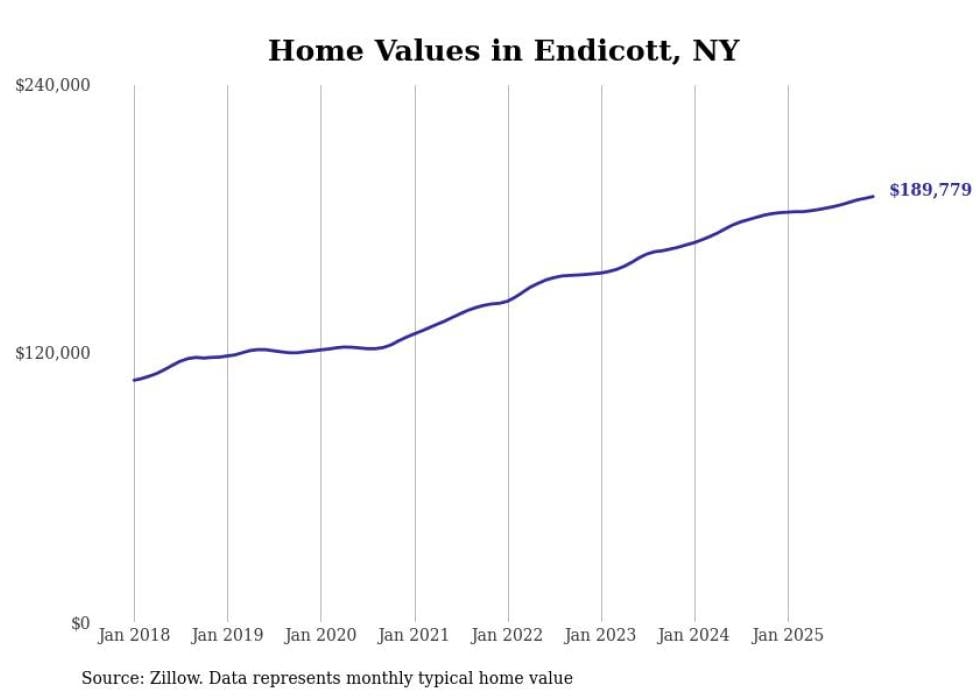 compiled a list of cities with the most expensive homes in the Binghamton metro area using data from . Charts show the monthly typical home value since January 2018. All 6 cities and towns with data available were included in the list.