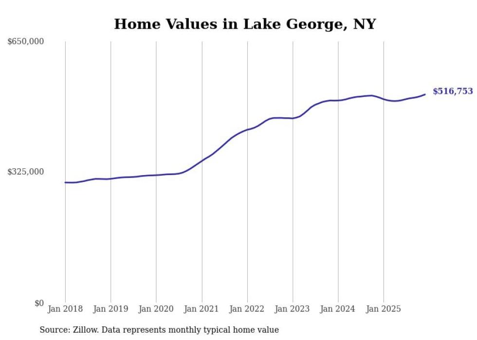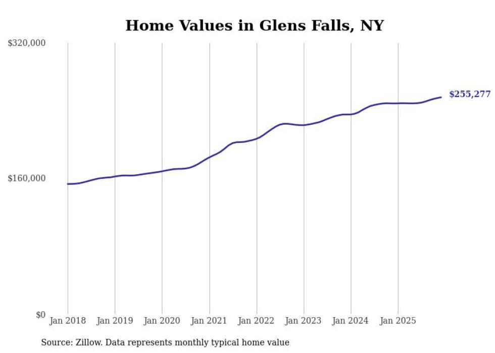 compiled a list of cities with the most expensive homes in the Glens Falls, NY metro area using data from . Charts show the monthly typical home value since January 2018.