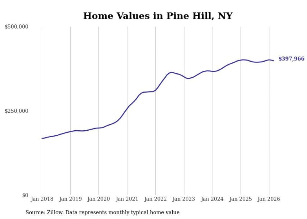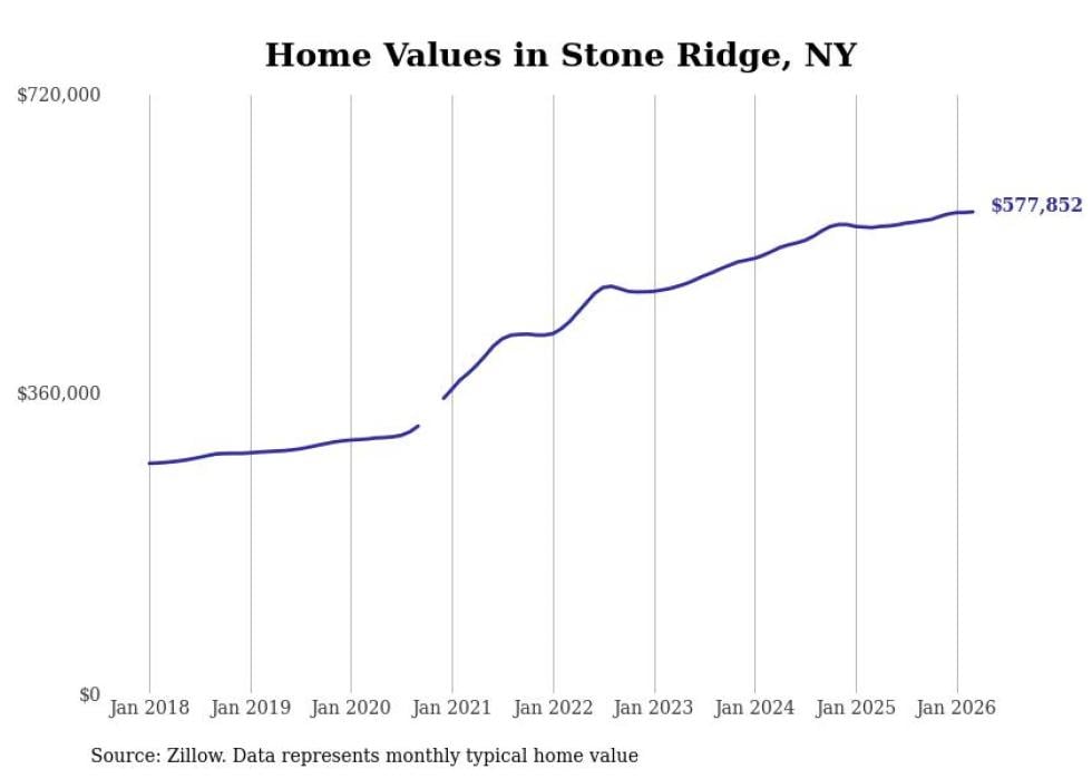 compiled a list of cities with the most expensive homes in the Kingston, NY metro area using data from . Charts show the monthly typical home value since January 2018.
