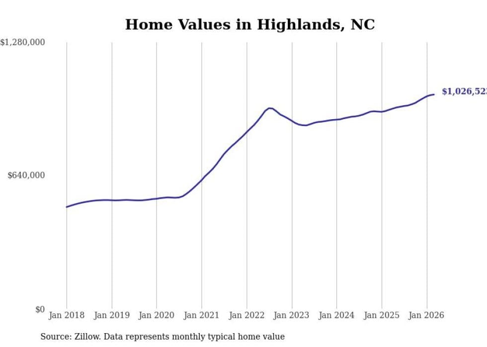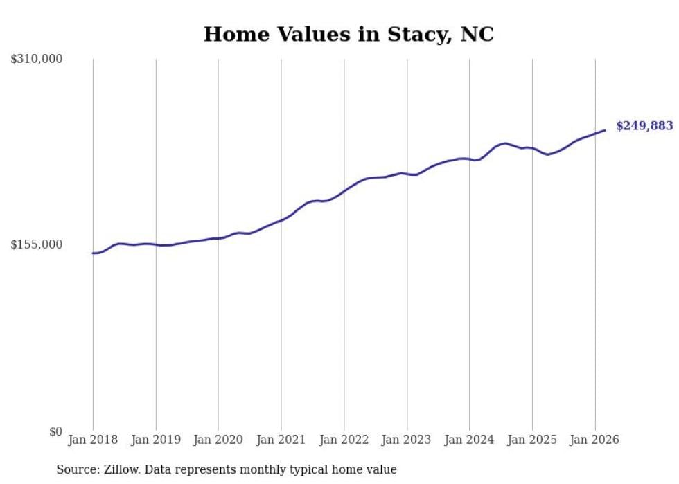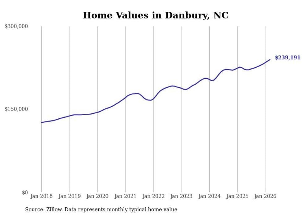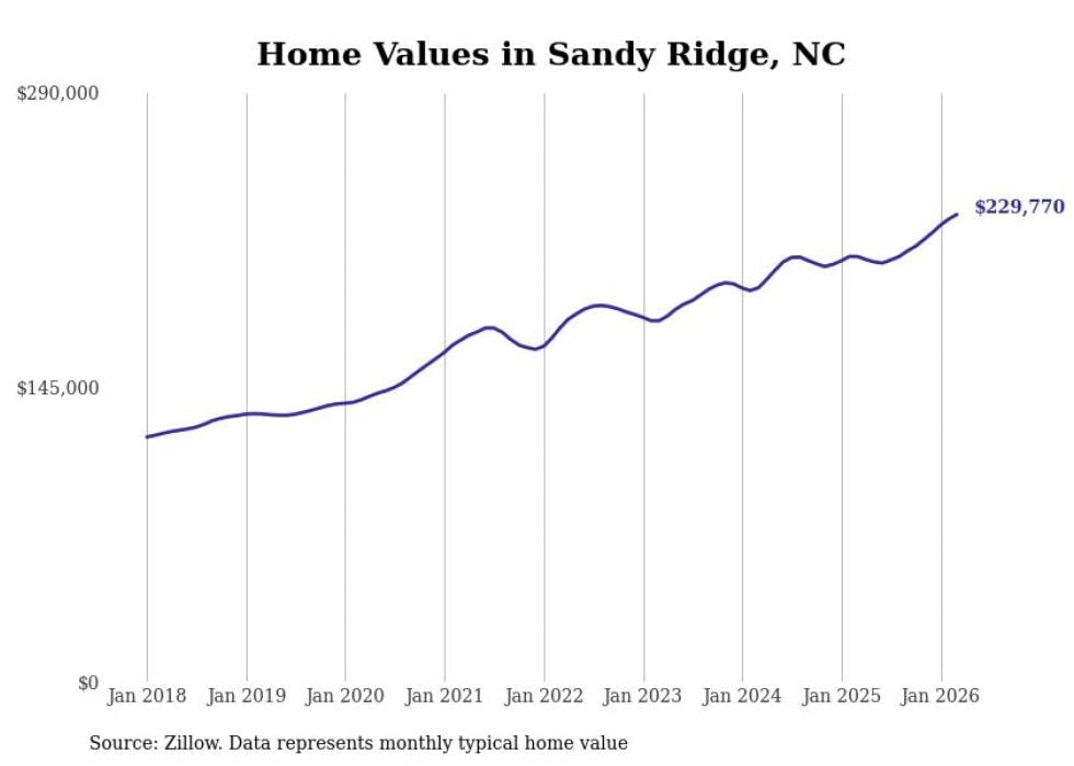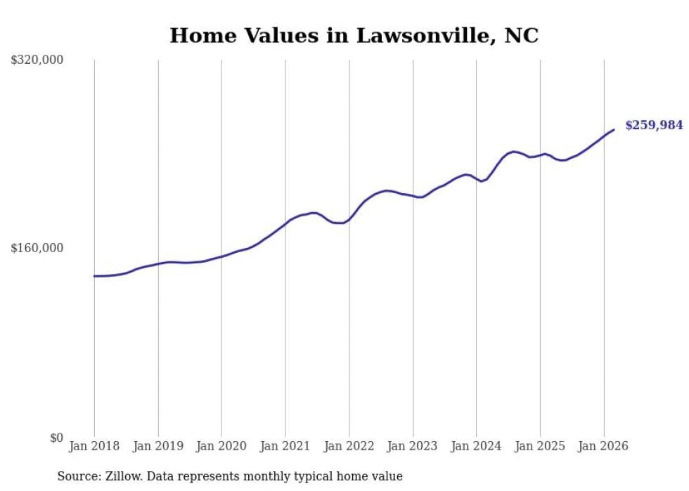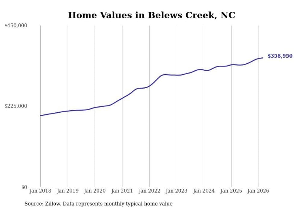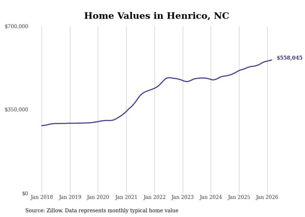 compiled a list of cities with the fastest-growing home prices in North Carolina using data from . Cities are ranked by the dollar change in the Zillow Home Values Index for all homes from the 12 months ending March 2026. The charts in this story were created automatically using . Data was available for 50 cities and towns in North Carolina.