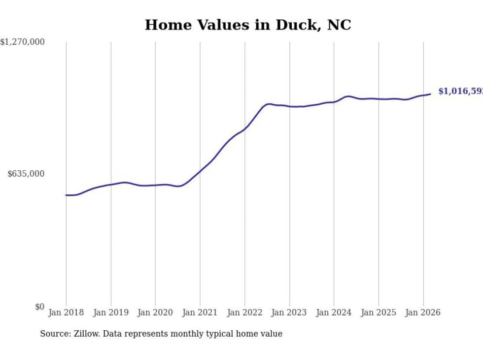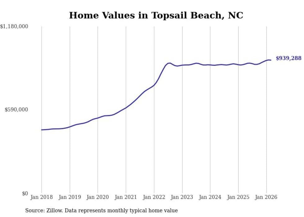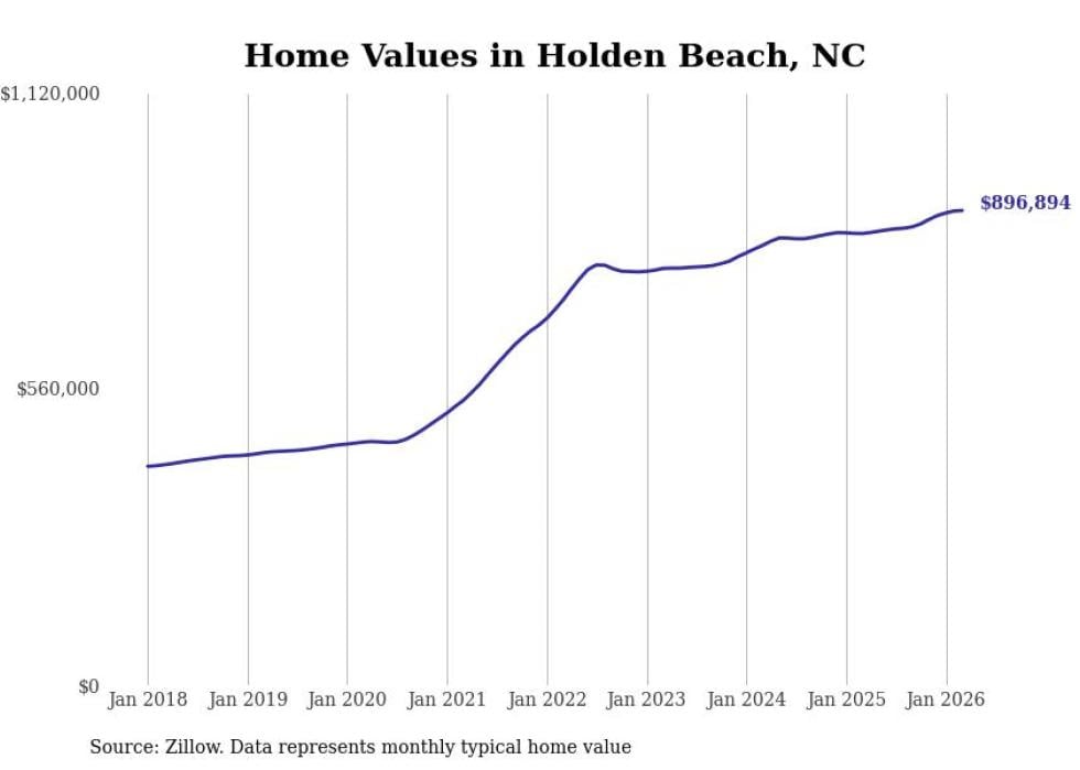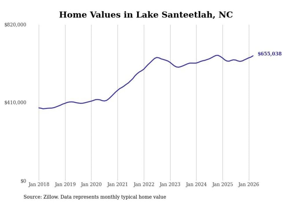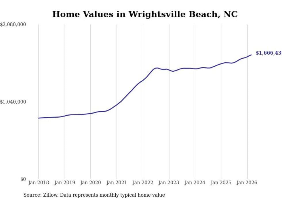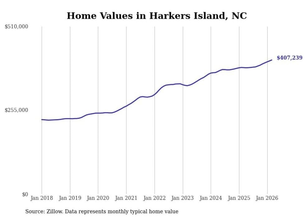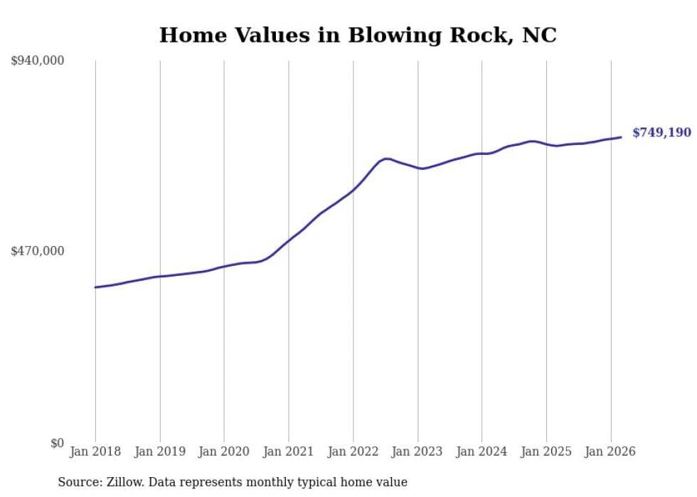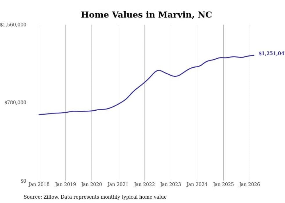 compiled a list of cities with the fastest-growing home prices in North Carolina using data from . Cities are ranked by the dollar change in the Zillow Home Values Index for all homes from the 12 months ending March 2026. The charts in this story were created automatically using . Data was available for 50 cities and towns in North Carolina.