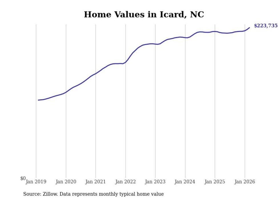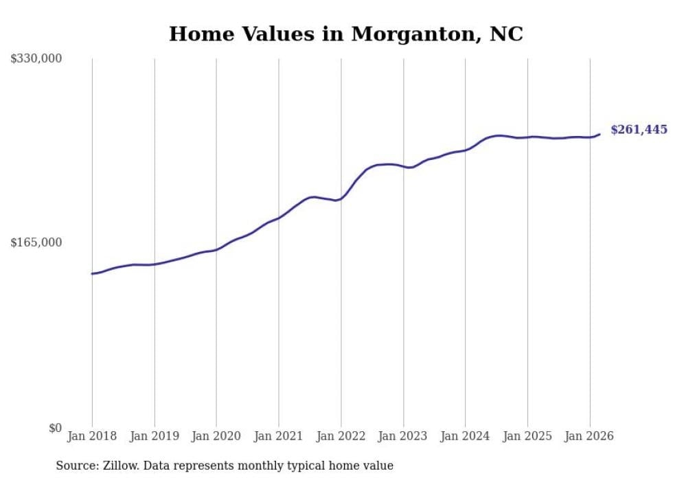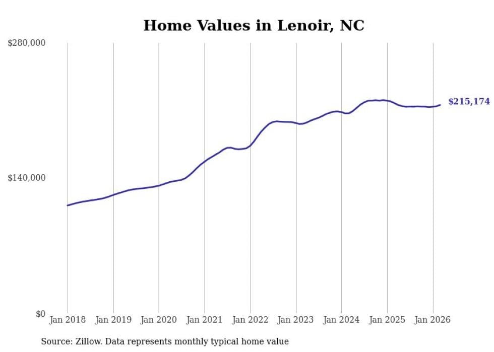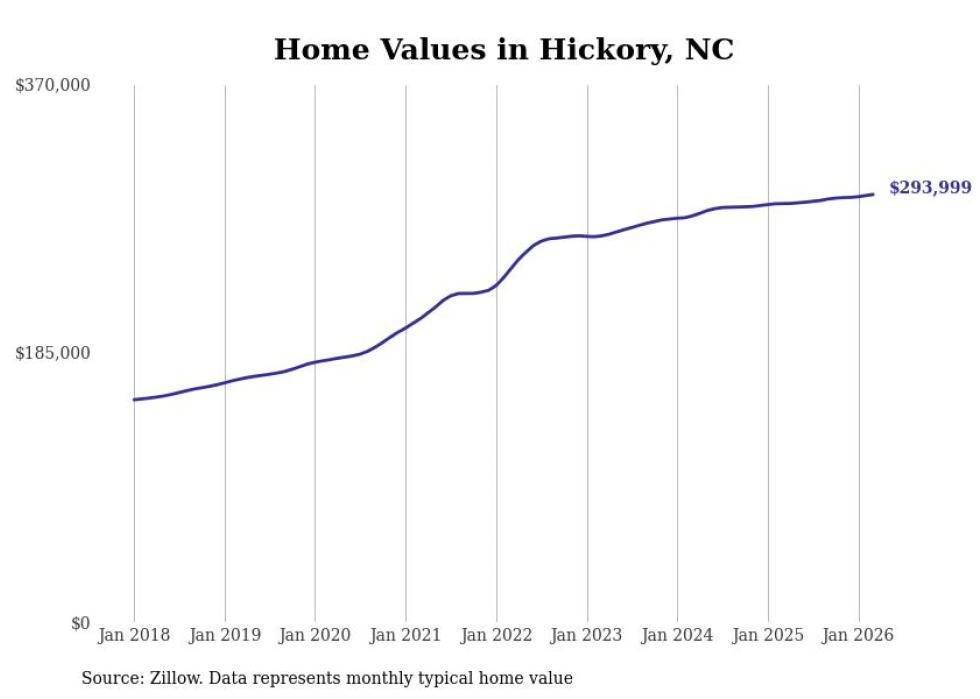 compiled a list of cities with the most expensive homes in the Hickory-Lenoir-Morganton, NC metro area using data from . Charts show the monthly typical home value since January 2018.