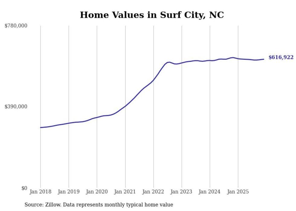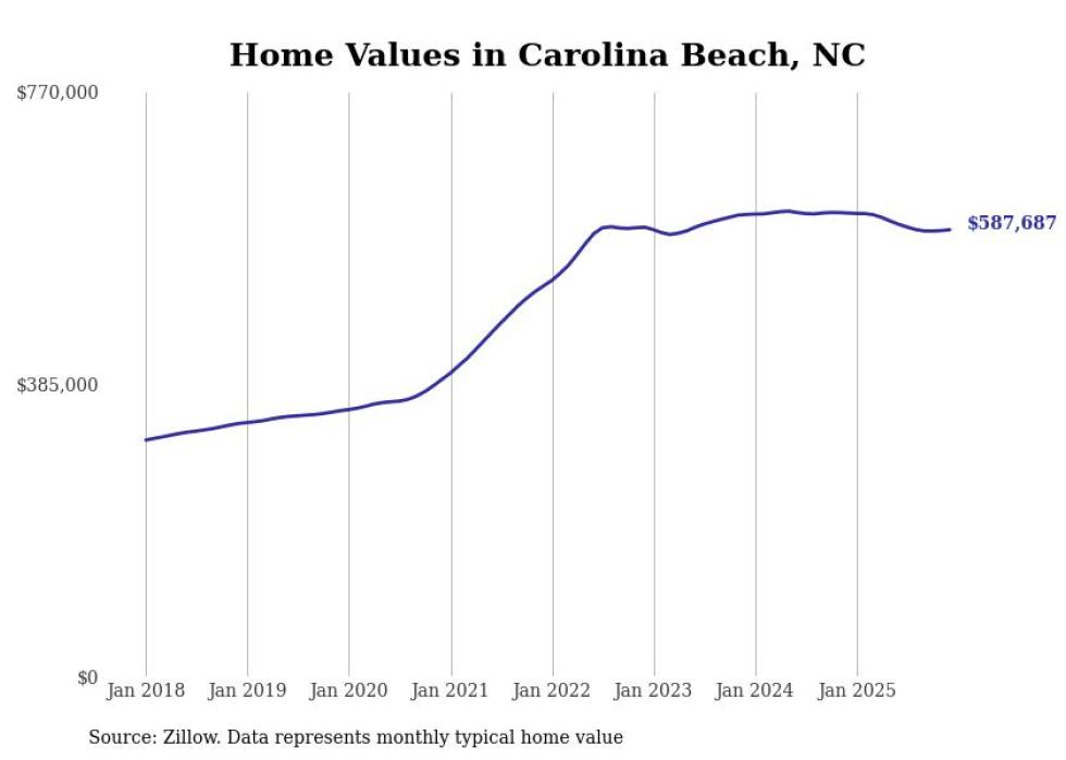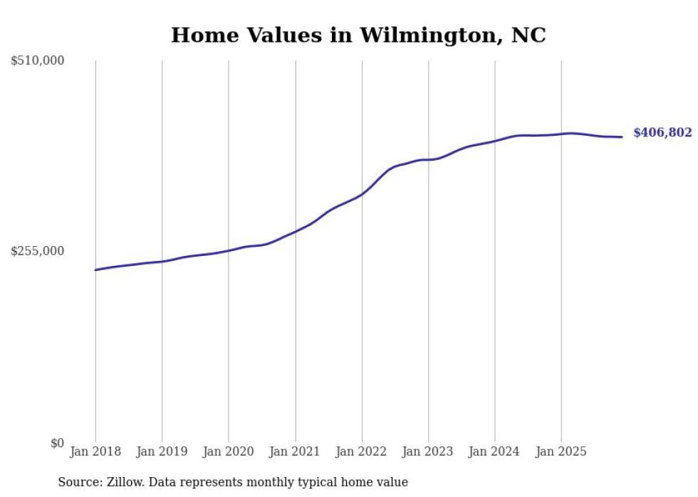 compiled a list of cities with the most expensive homes in the Wilmington metro area using data from . Charts show the monthly typical home value since January 2018. All 14 cities and towns with data available were included in the list.