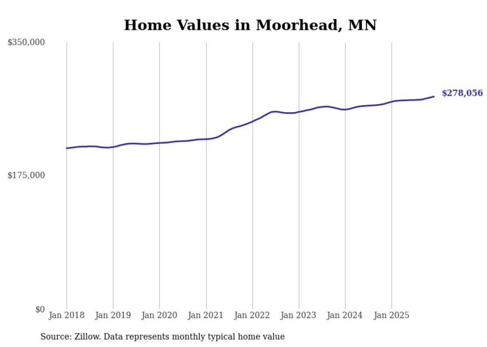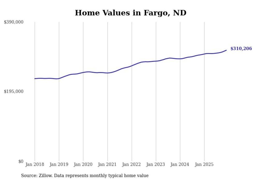 compiled a list of cities with the most expensive homes in the Fargo, ND-MN metro area using data from . Charts show the monthly typical home value since January 2018.