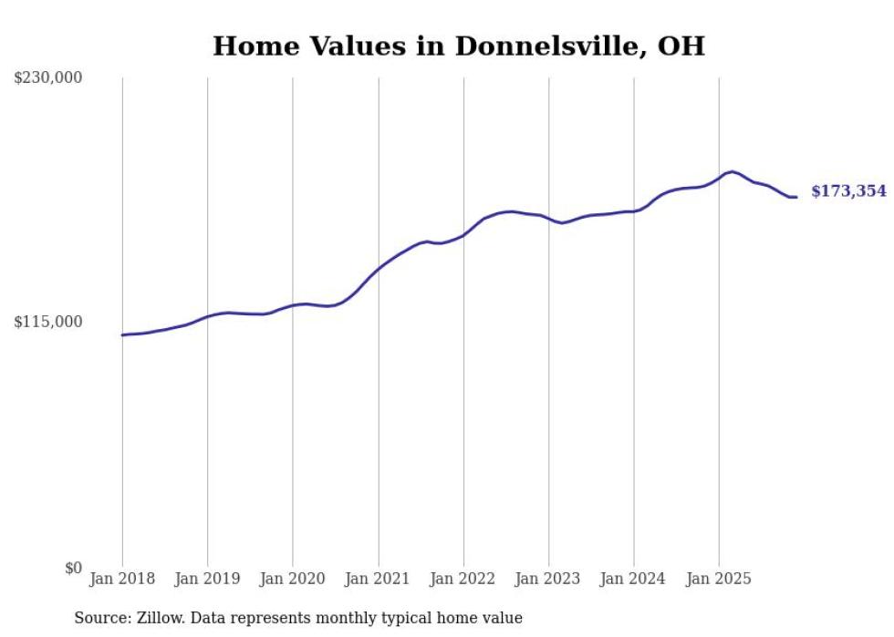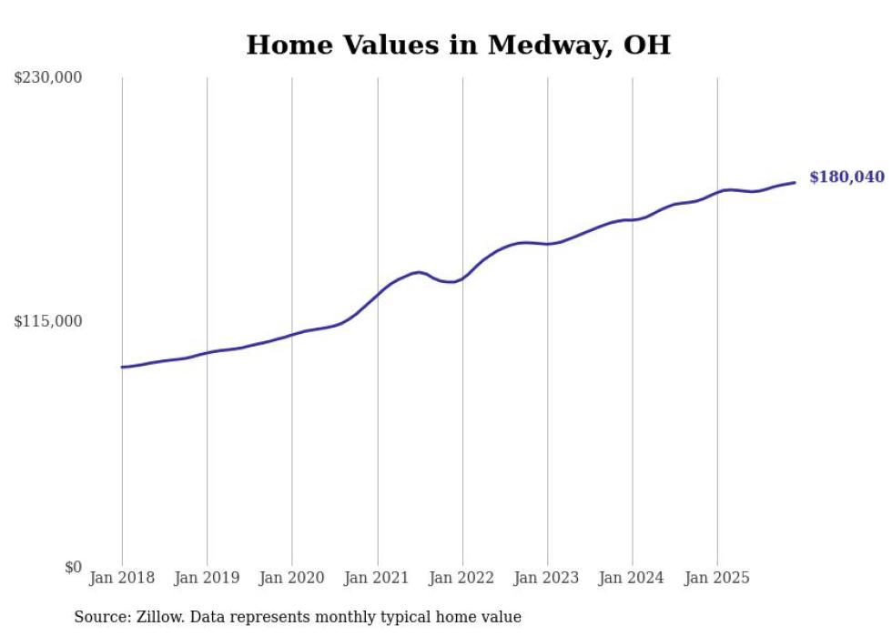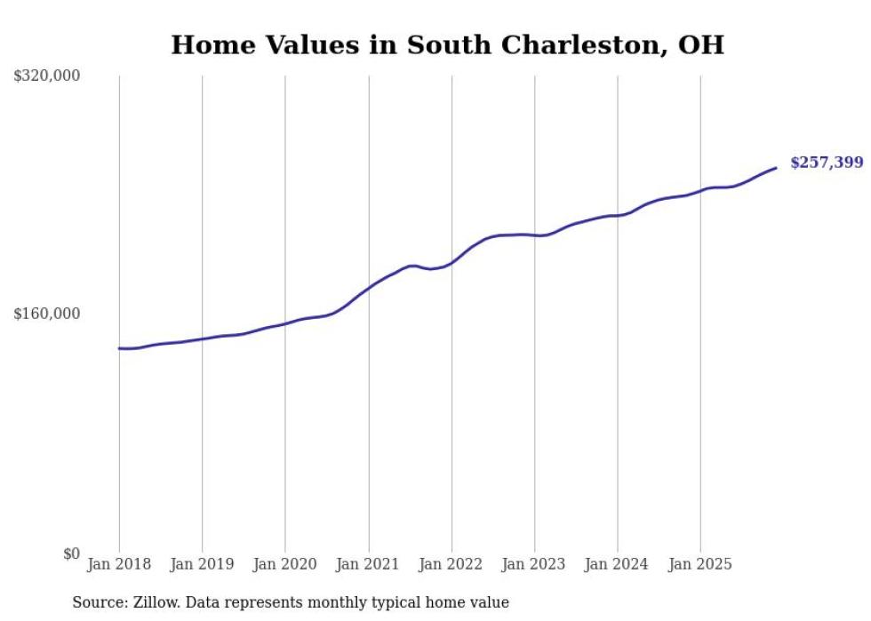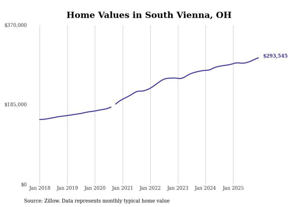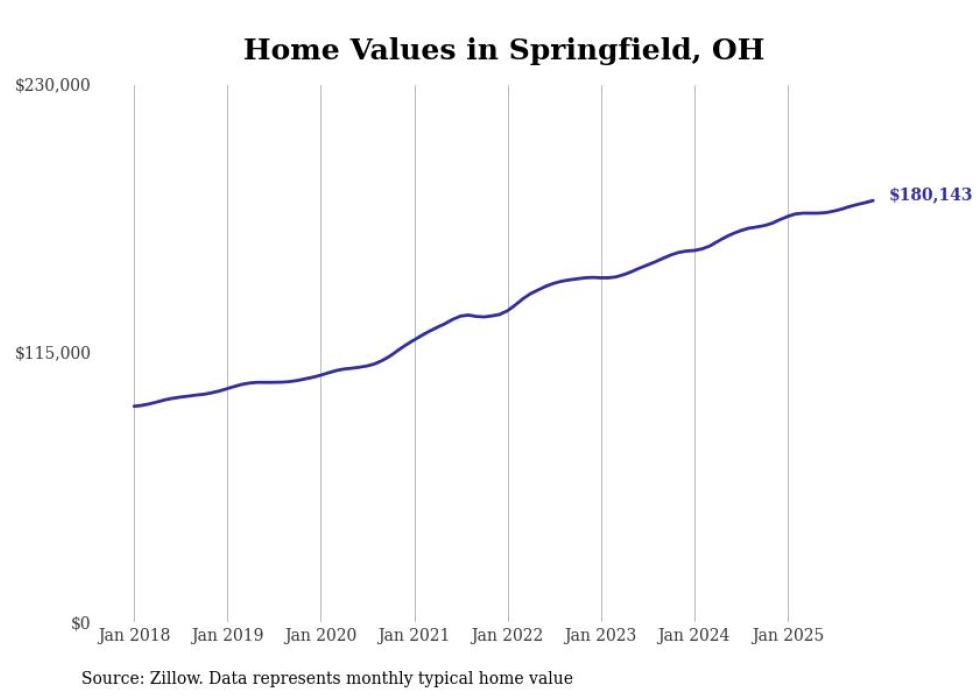compiled a list of cities with the most expensive homes in the Springfield, Ohio metro area using data from . Charts show the monthly typical home value since January 2018. All 8 cities and towns with data available were included in the list.