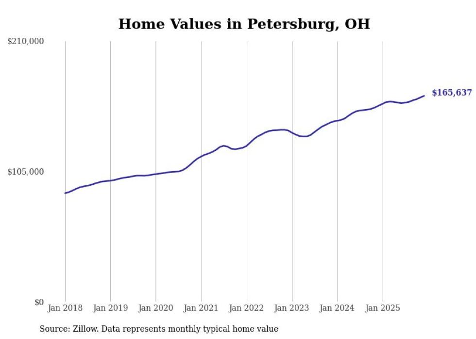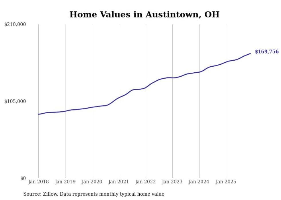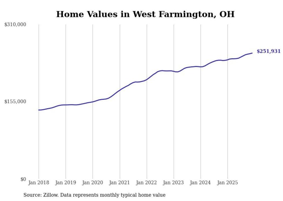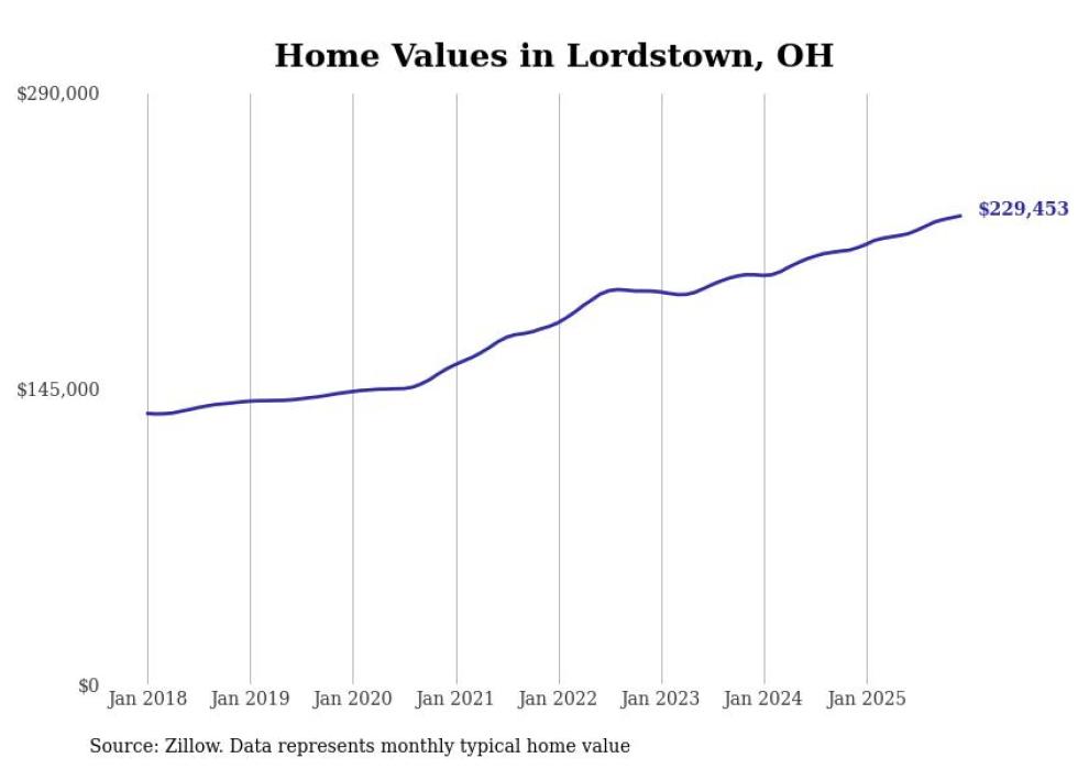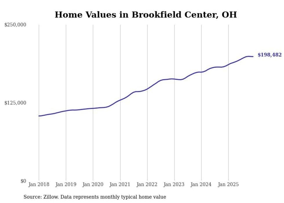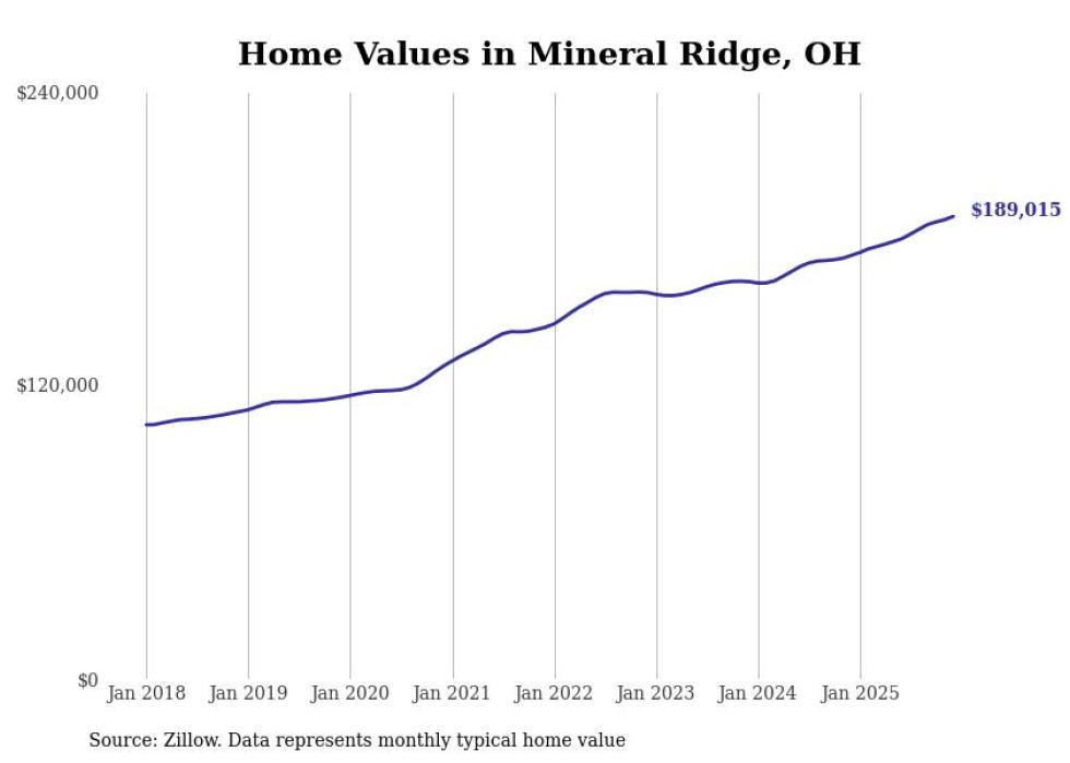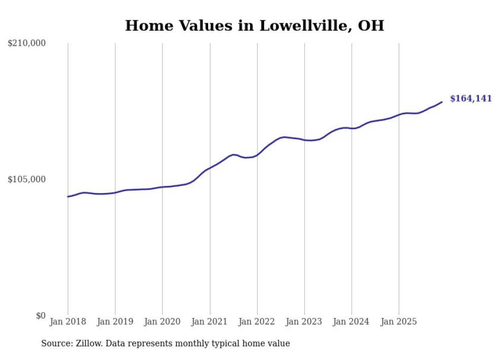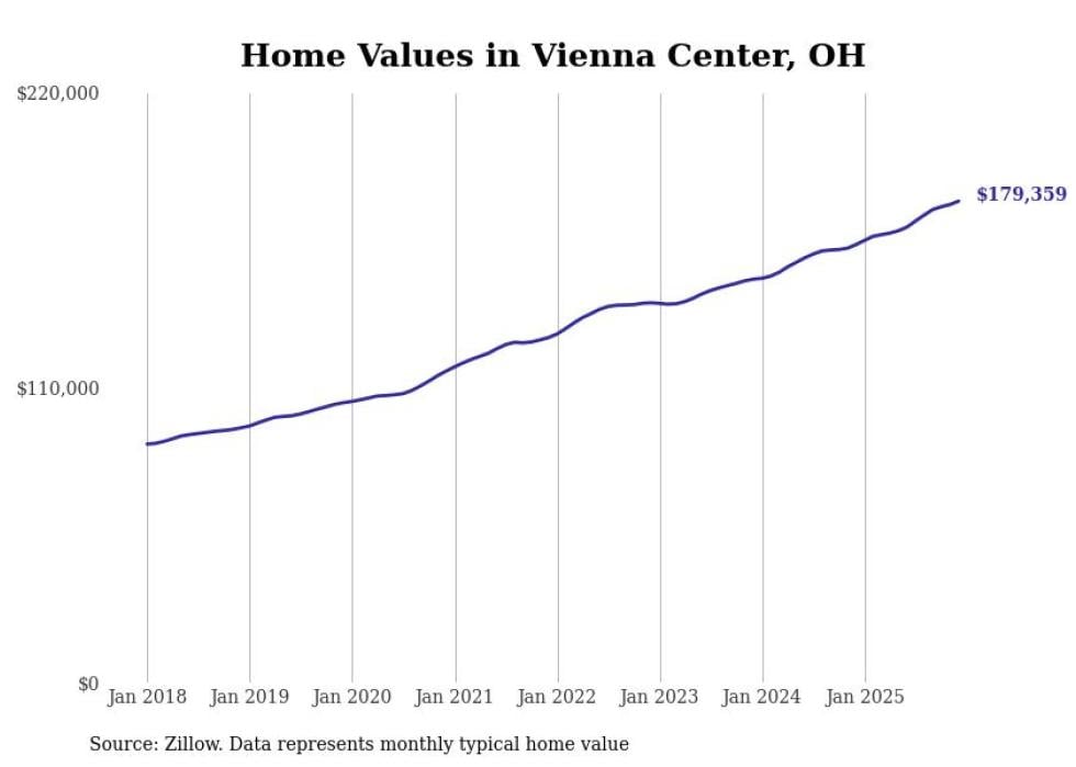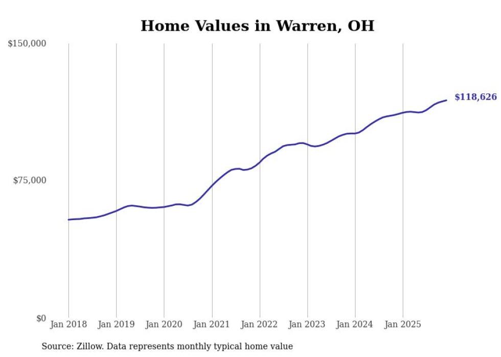 compiled a list of cities with the most expensive homes in the Youngstown-Warren-Boardman, OH-PA metro area using data from . Charts show the monthly typical home value since January 2018.