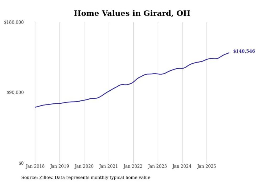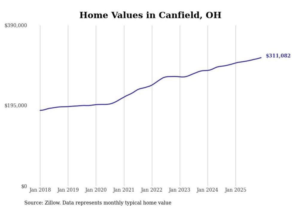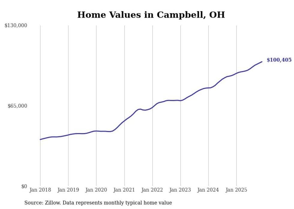 Cities with the fastest-growing home prices in the Youngstown metro area
