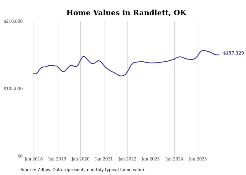 compiled a list of cities with the most expensive homes in the Lawton metro area using data from . Charts show the monthly typical home value since January 2018. All 13 cities and towns with data available were included in the list.