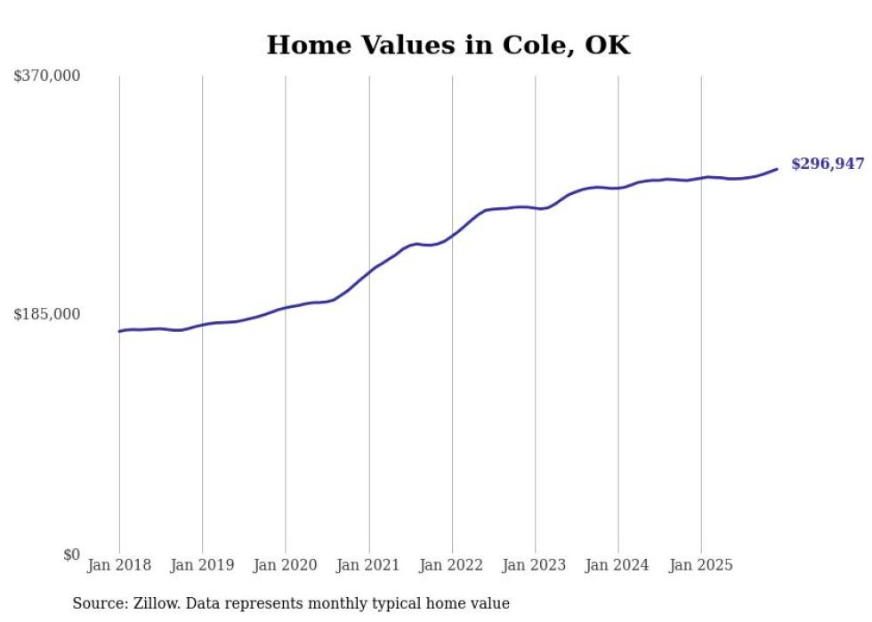 Cities with the fastest-growing home prices in the Oklahoma City metro area