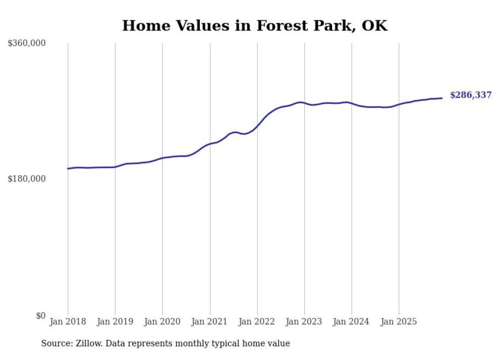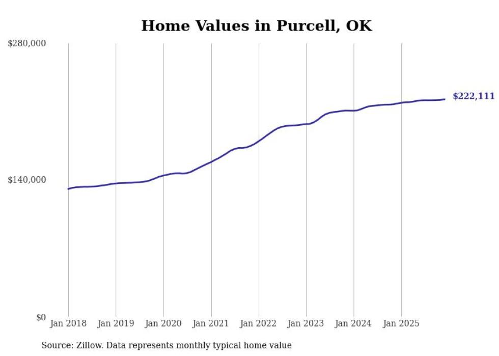 compiled a list of cities with the most expensive homes in the Oklahoma City, OK metro area using data from . Charts show the monthly typical home value since January 2018.