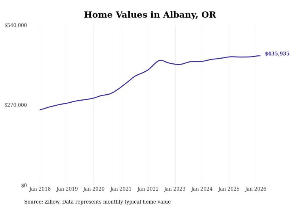 compiled a list of cities with the most expensive homes in the Albany-Lebanon, OR metro area using data from . Charts show the monthly typical home value since January 2018.
