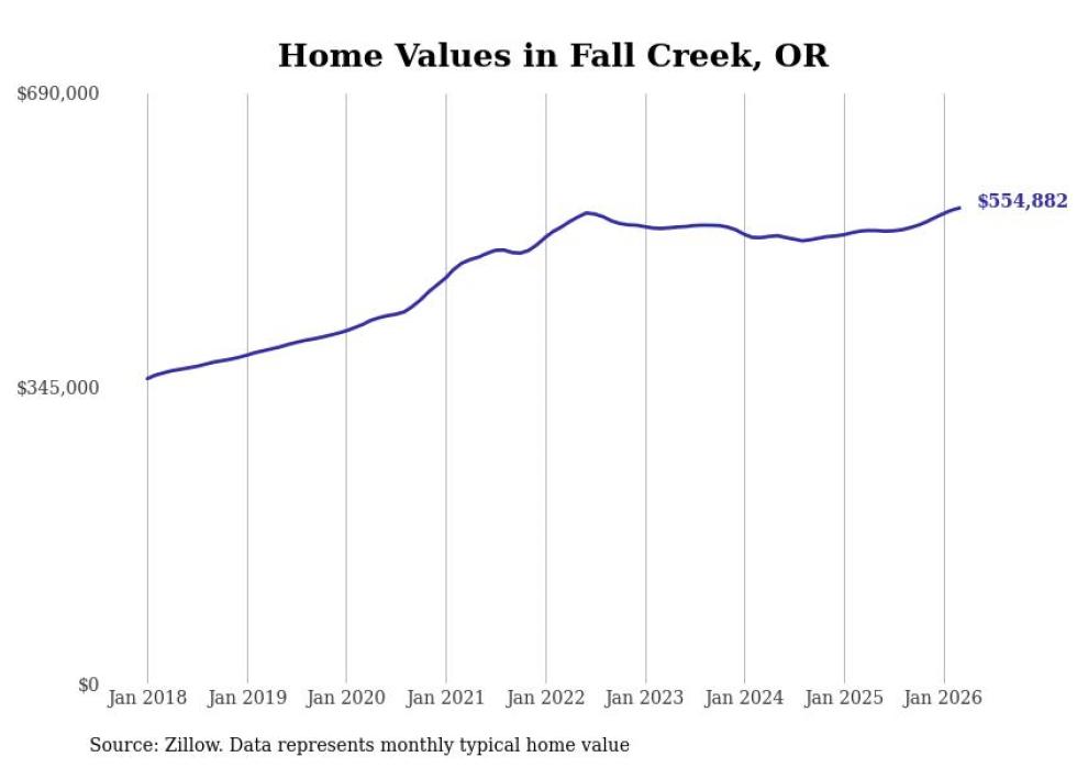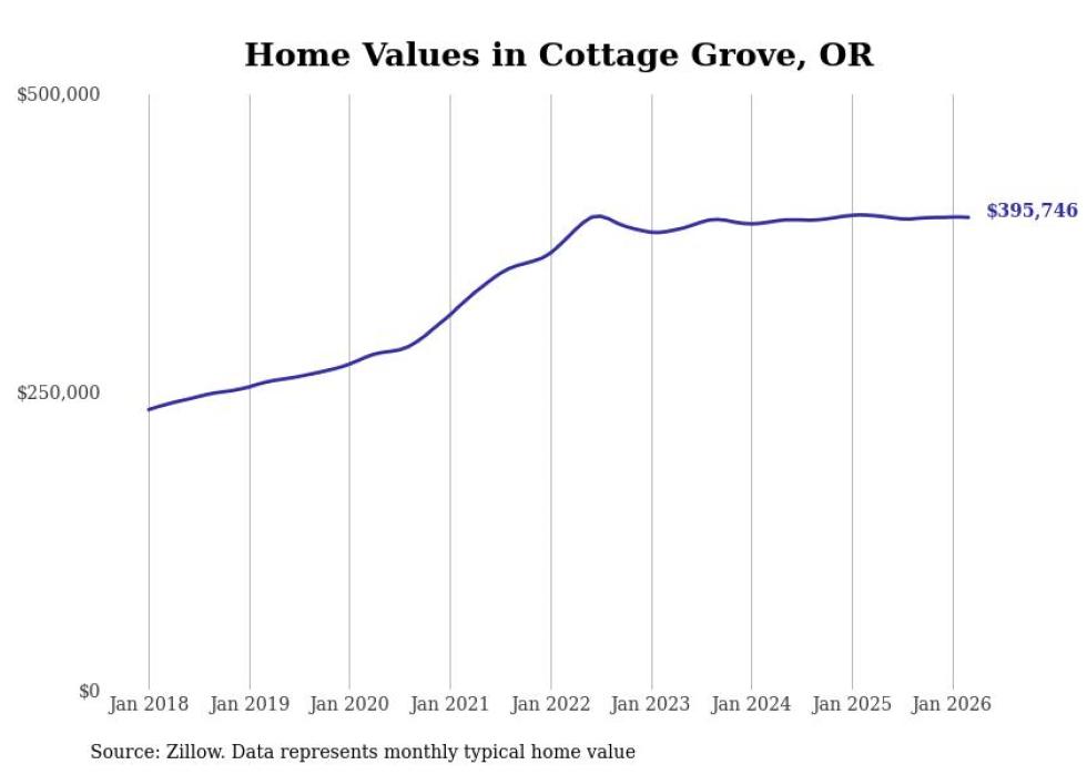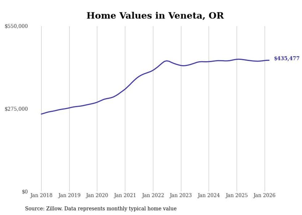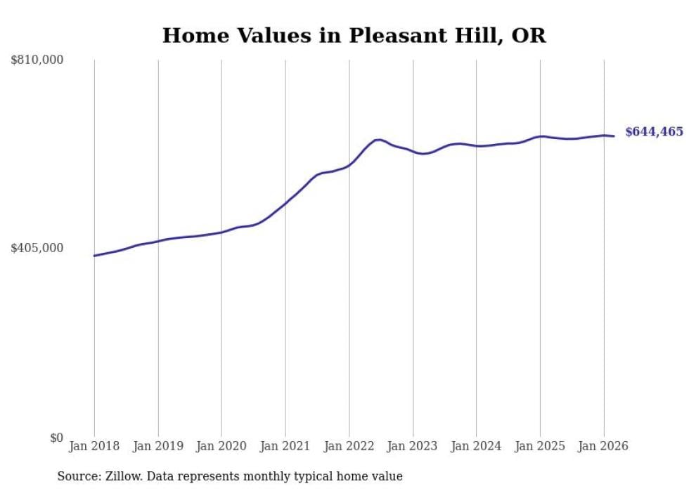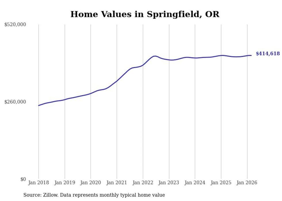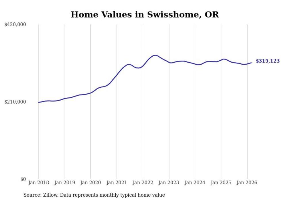 compiled a list of cities with the most expensive homes in the Eugene-Springfield, OR metro area using data from . Charts show the monthly typical home value since January 2018.