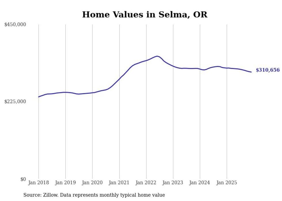 compiled a list of cities with the most expensive homes in the Grants Pass, OR metro area using data from . Charts show the monthly typical home value since January 2018.