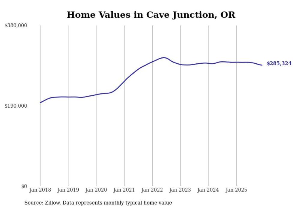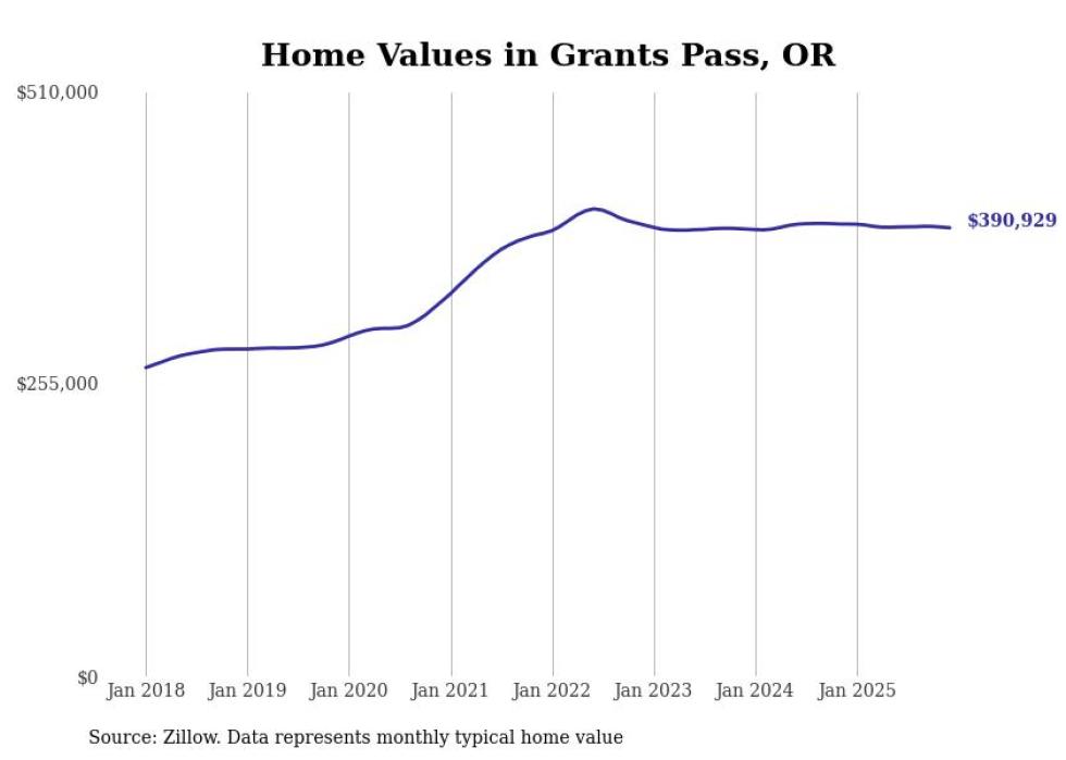 compiled a list of cities with the most expensive homes in the Grants Pass metro area using data from . Charts show the monthly typical home value since January 2018. All 7 cities and towns with data available were included in the list.