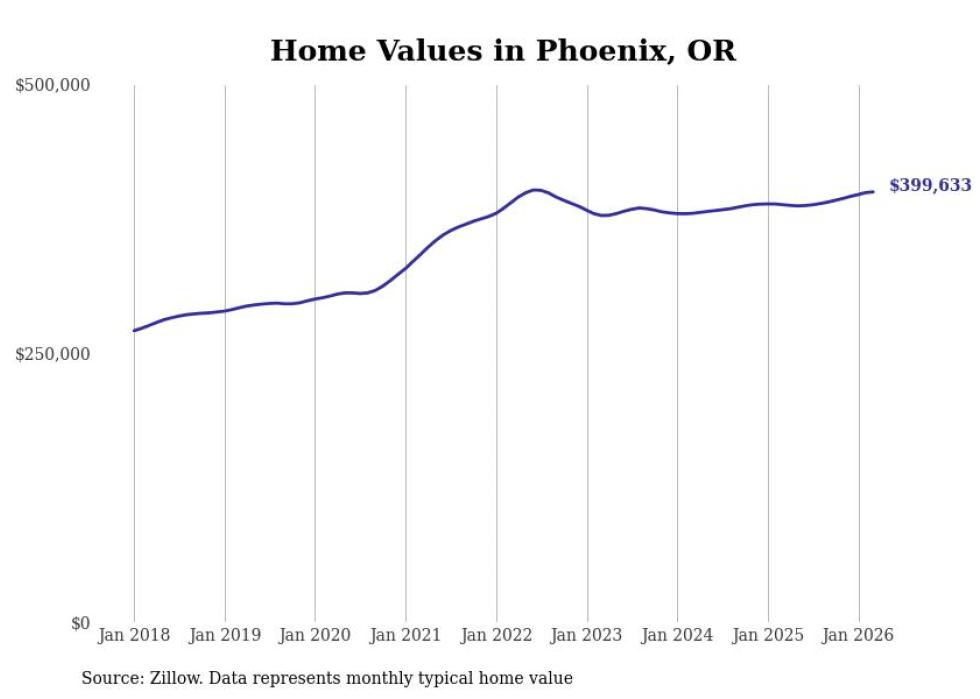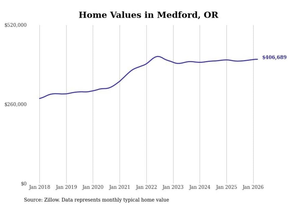 compiled a list of cities with the most expensive homes in the Medford metro area using data from . Charts show the monthly typical home value since January 2018. All 14 cities and towns with data available were included in the list.