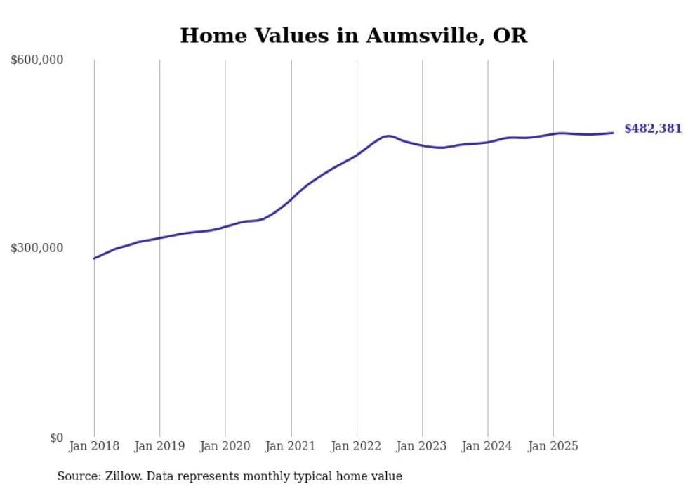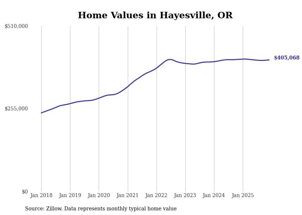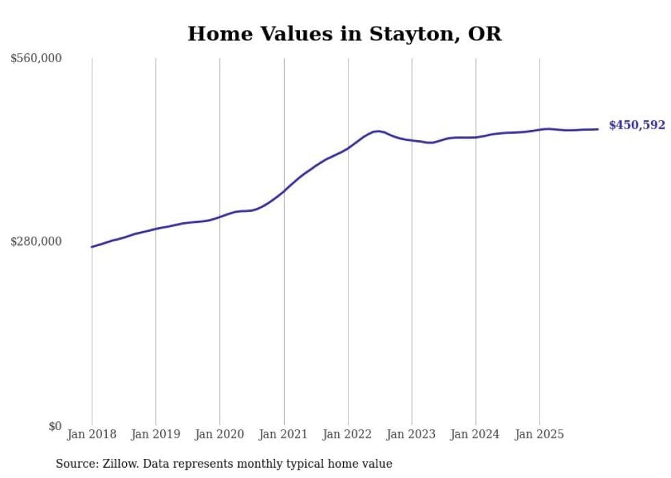 compiled a list of cities with the most expensive homes in the Salem metro area using data from . Charts show the monthly typical home value since January 2018. All 26 cities and towns with data available were included in the list.