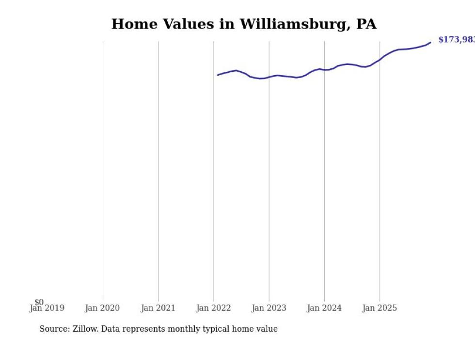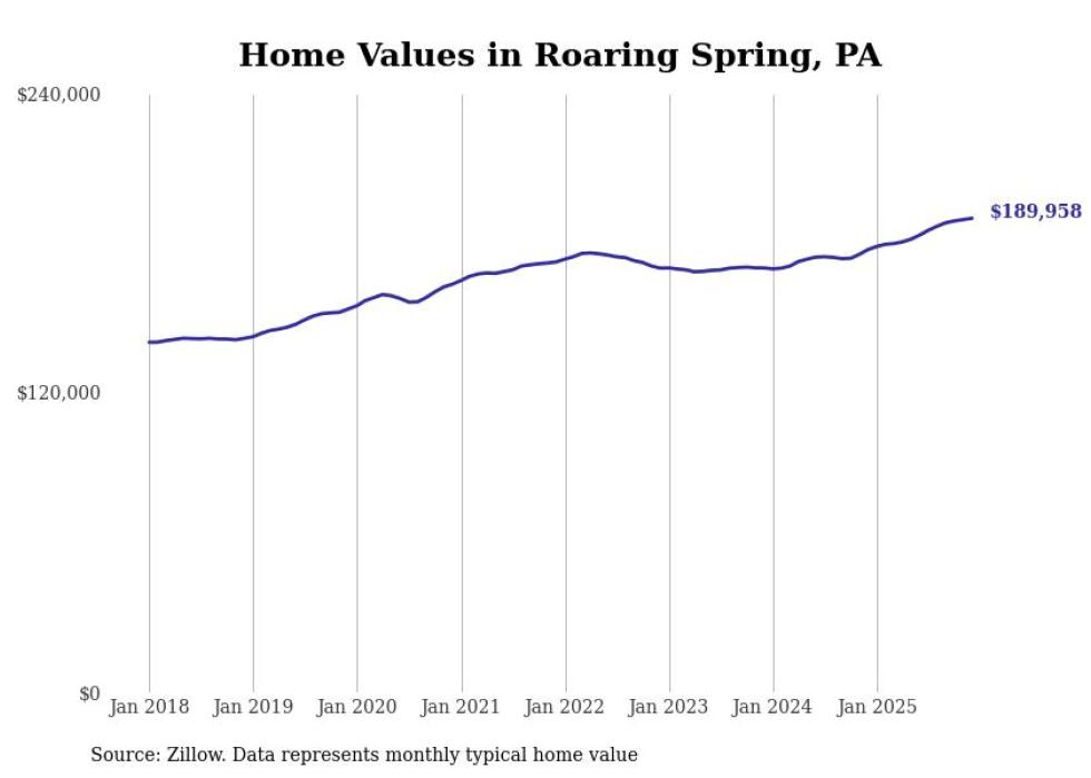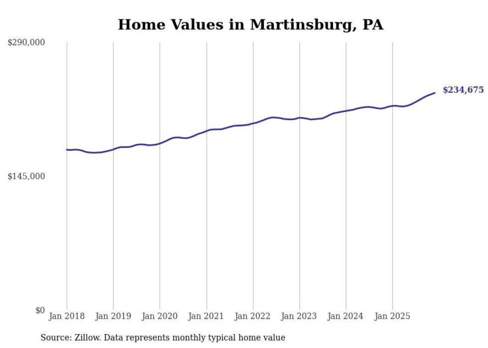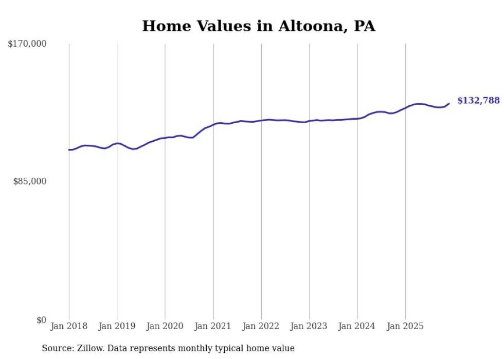 compiled a list of cities with the most expensive homes in the Altoona metro area using data from . Charts show the monthly typical home value since January 2018. All 8 cities and towns with data available were included in the list.