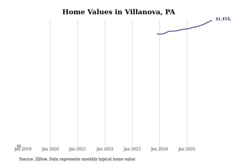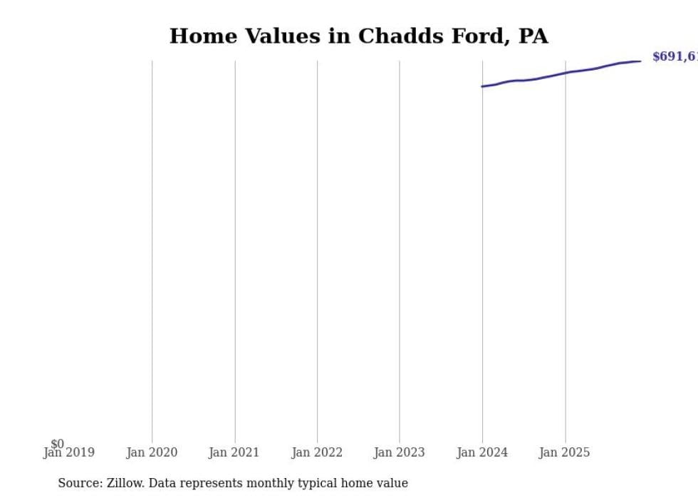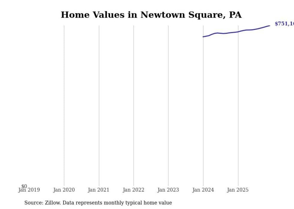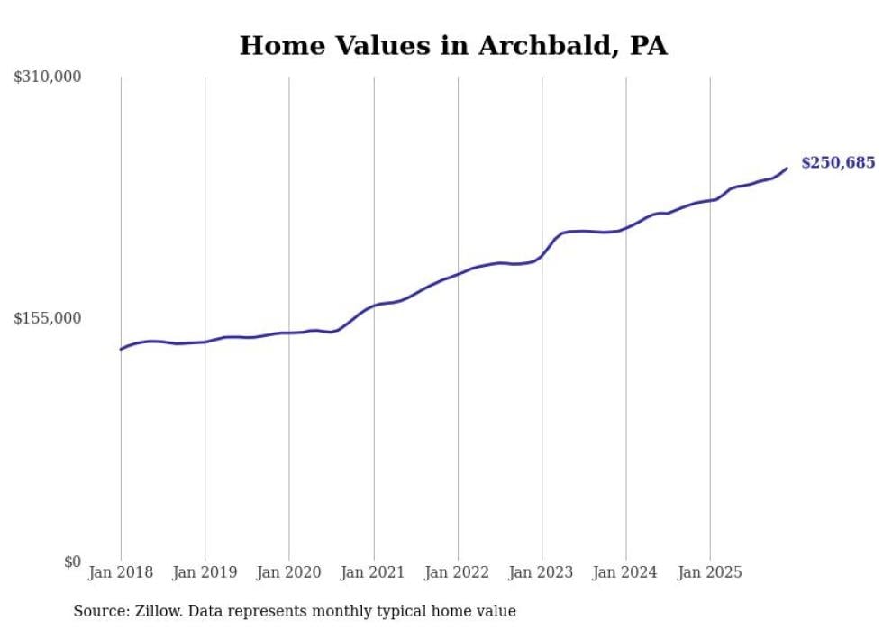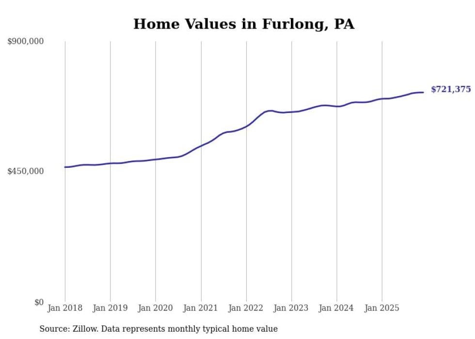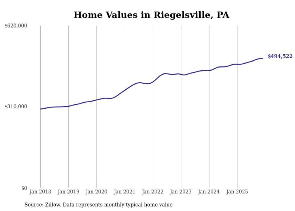 compiled a list of cities with the fastest-growing home prices in Pennsylvania using data from . Cities are ranked by the dollar change in the Zillow Home Values Index for all homes from the 12 months ending December 2025. The charts in this story were created automatically using . Data was available for 50 cities and towns in Pennsylvania.