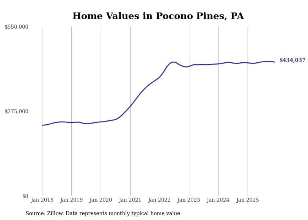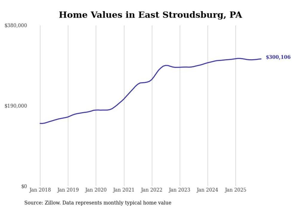 compiled a list of cities with the most expensive homes in the East Stroudsburg, PA metro area using data from . Charts show the monthly typical home value since January 2018.