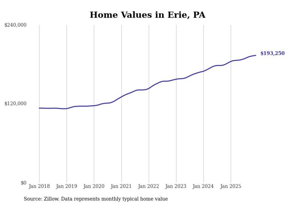 Cities with the fastest-growing home prices in the Erie metro area