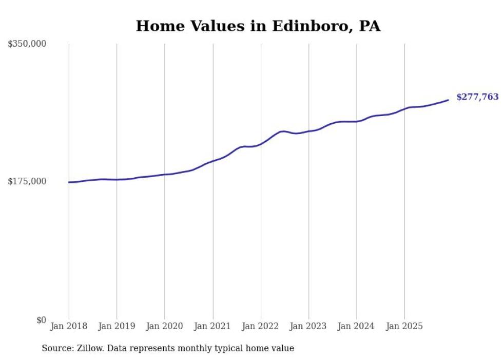 compiled a list of cities with the most expensive homes in the Erie metro area using data from . Charts show the monthly typical home value since January 2018. All 9 cities and towns with data available were included in the list.