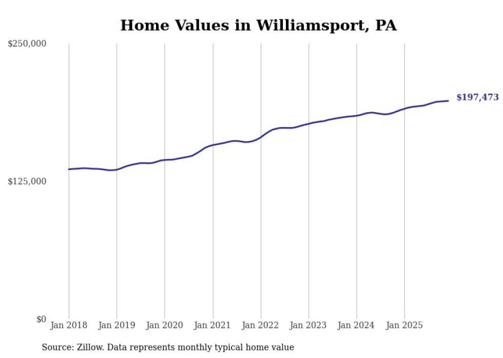 compiled a list of cities with the most expensive homes in the Williamsport, PA metro area using data from . Charts show the monthly typical home value since January 2018.