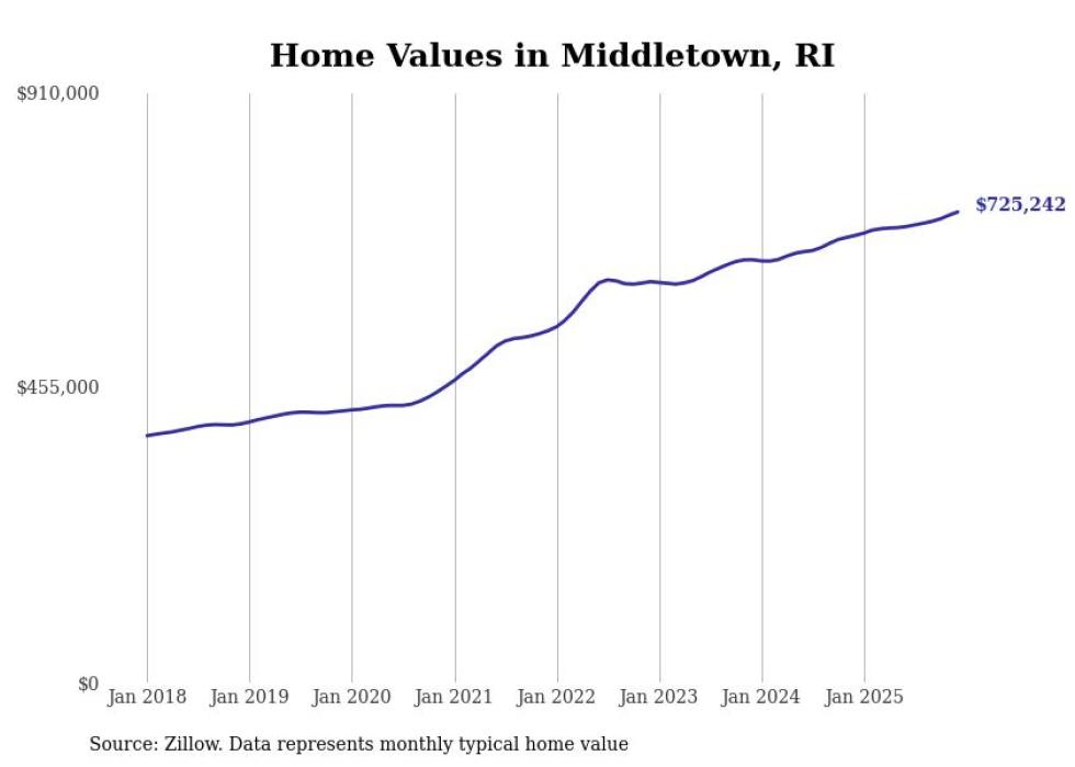 compiled a list of cities with the most expensive homes in the Providence metro area using data from . Charts show the monthly typical home value since January 2018. Data was available for 61 cities and towns.