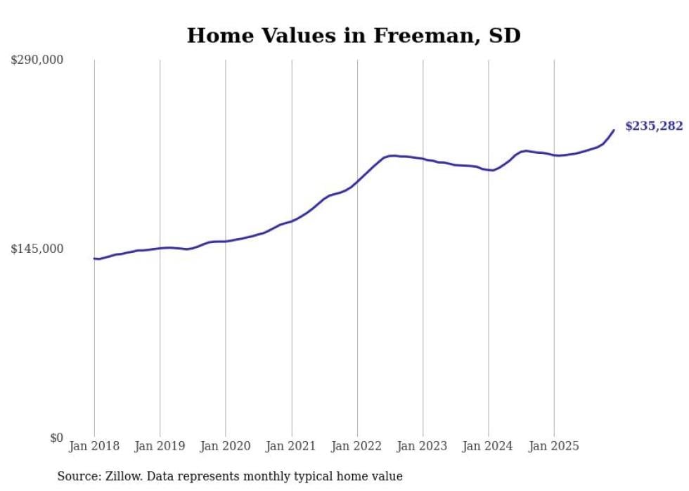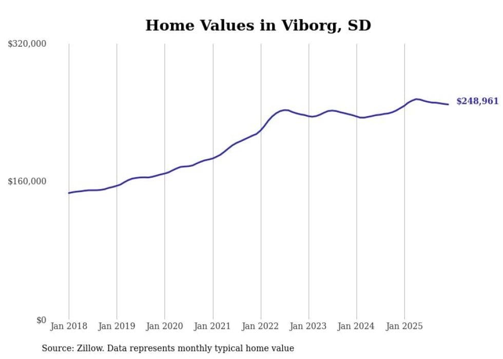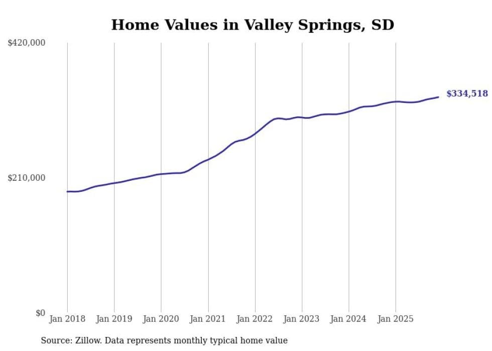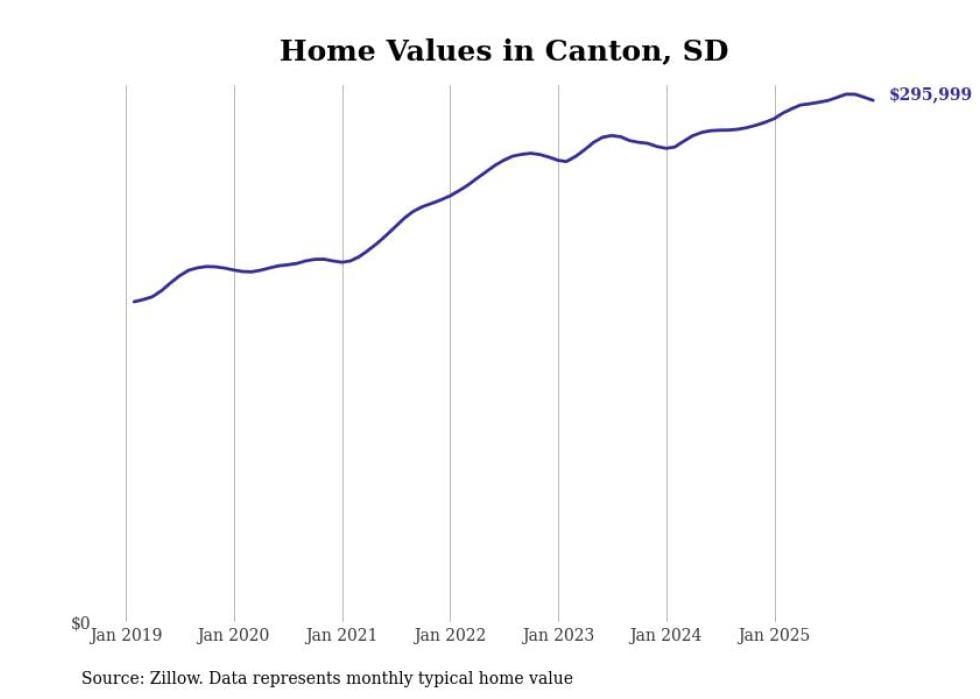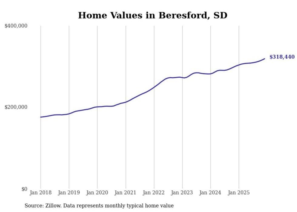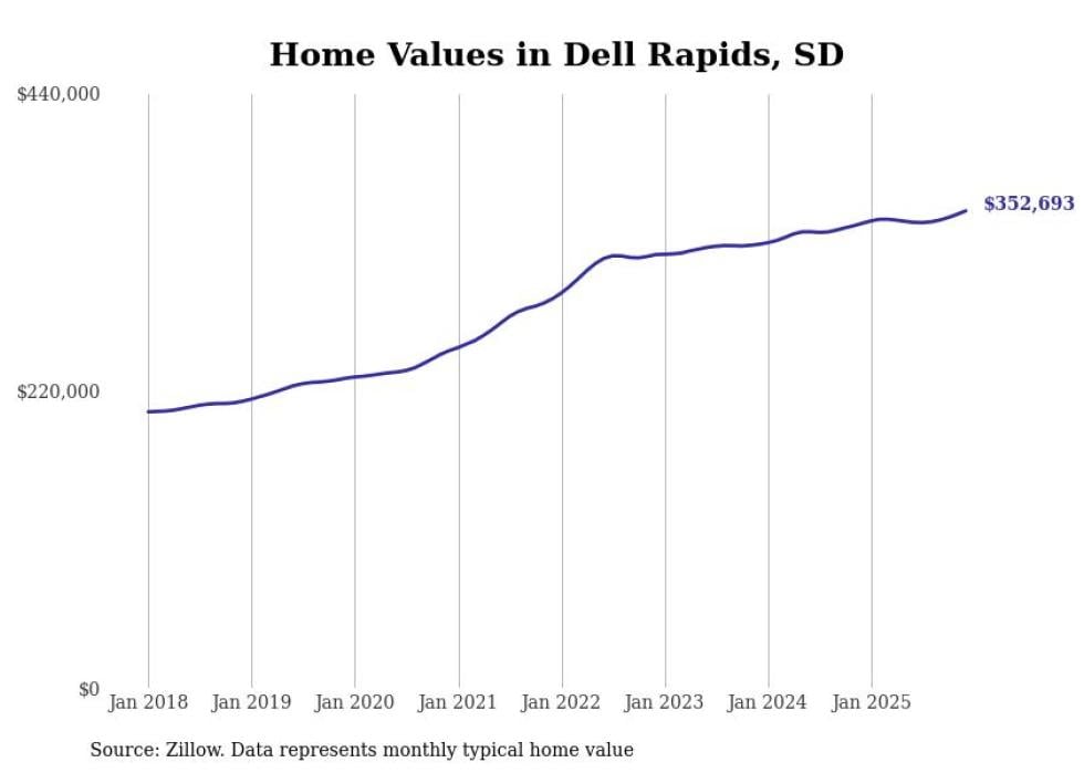 compiled a list of cities with the most expensive homes in the Sioux Falls, SD metro area using data from . Charts show the monthly typical home value since January 2018.