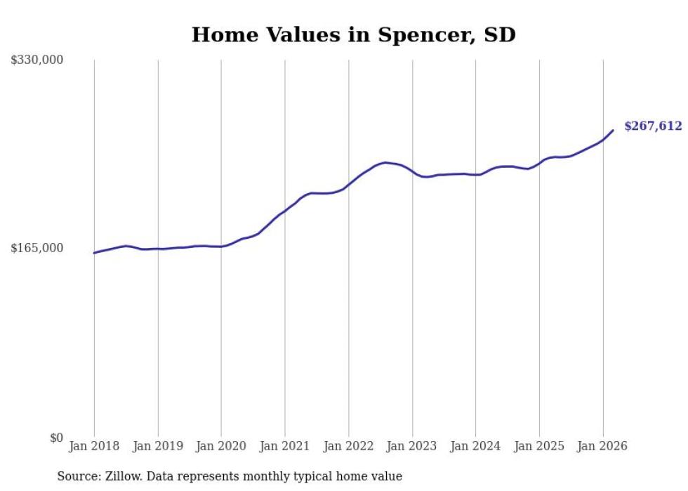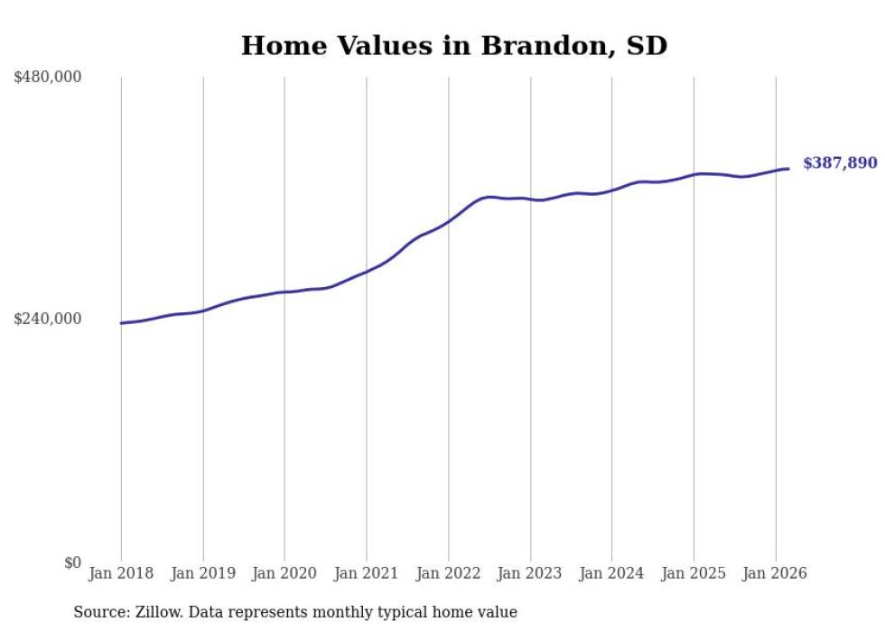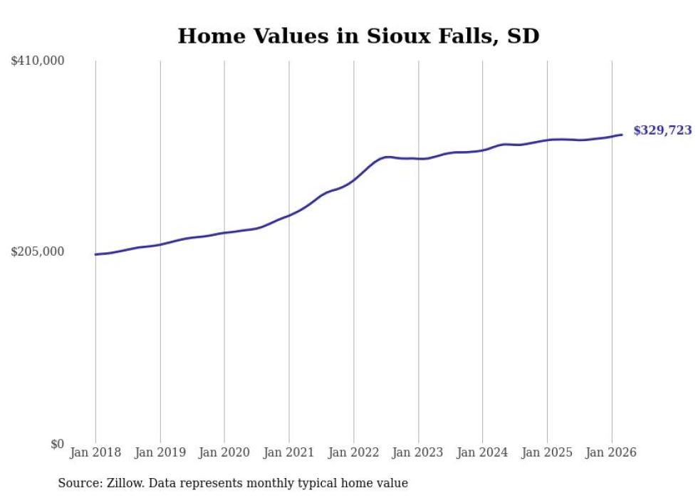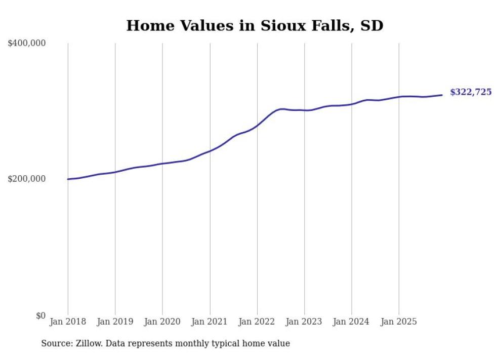 compiled a list of cities with the most expensive homes in the Sioux Falls metro area using data from . Charts show the monthly typical home value since January 2018. All 26 cities and towns with data available were included in the list.