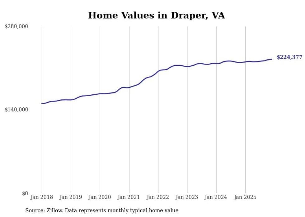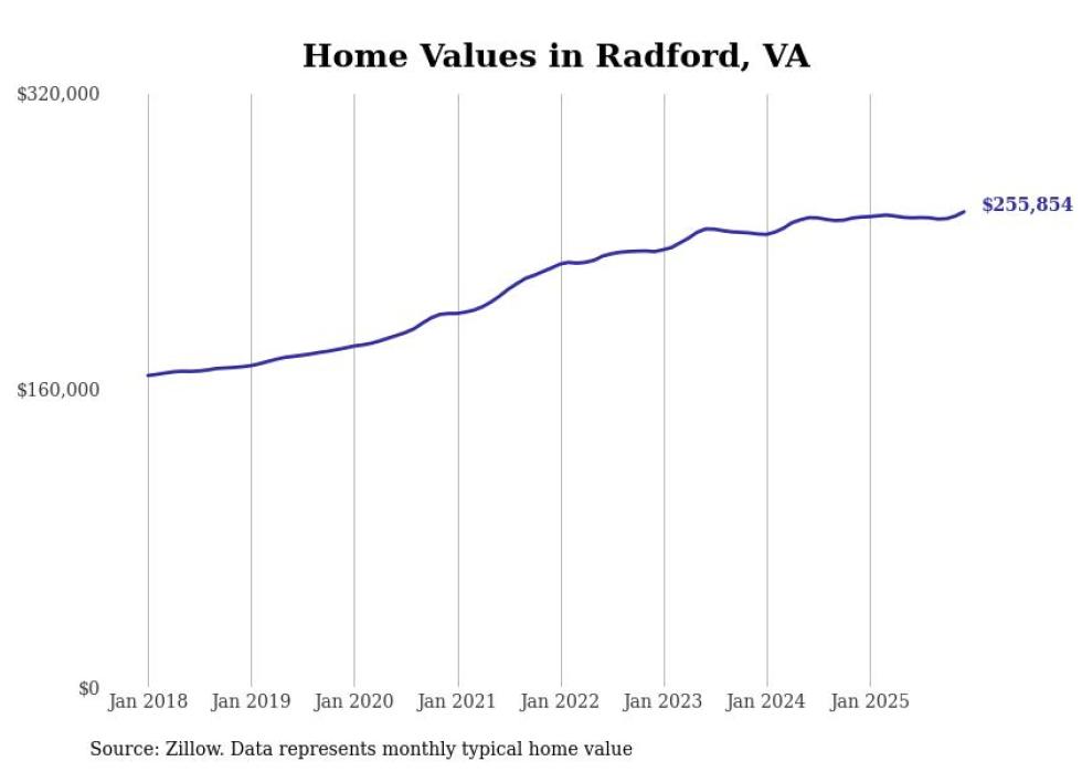 compiled a list of cities with the most expensive homes in the Blacksburg-Christiansburg, VA metro area using data from . Charts show the monthly typical home value since January 2018.