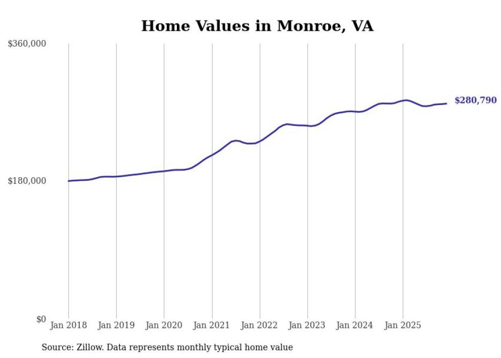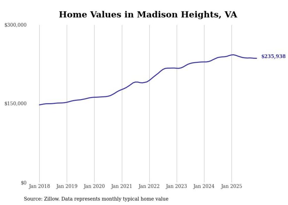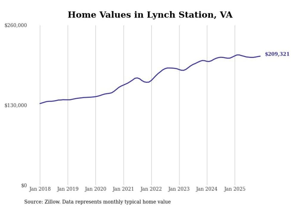 compiled a list of cities with the most expensive homes in the Lynchburg, VA metro area using data from . Charts show the monthly typical home value since January 2018.