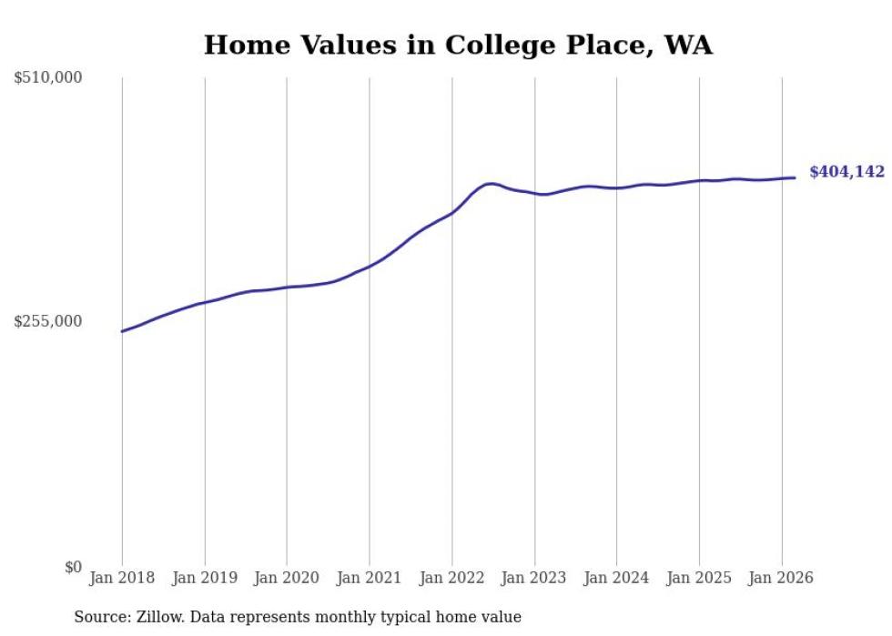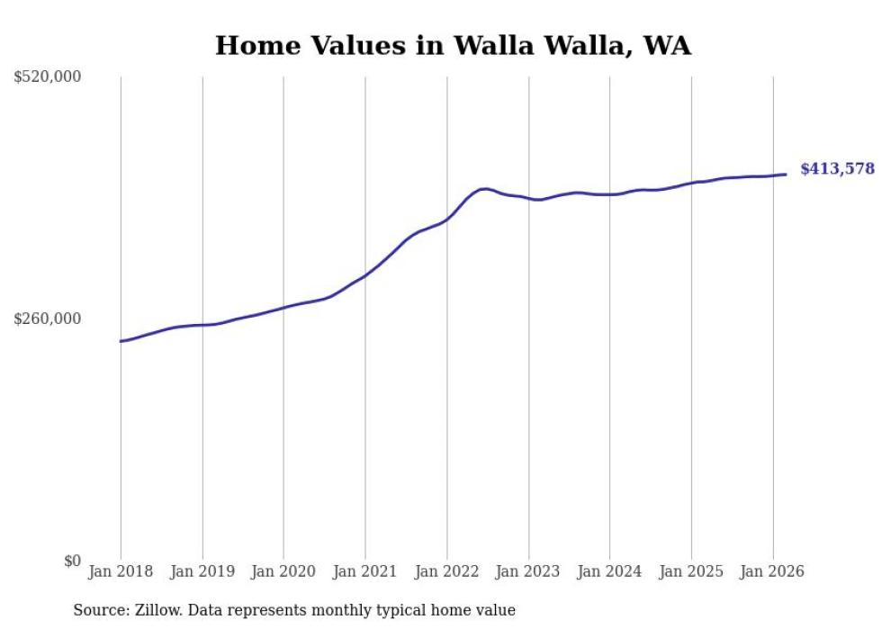 compiled a list of cities with the most expensive homes in the Walla Walla metro area using data from . Charts show the monthly typical home value since January 2018. All 6 cities and towns with data available were included in the list.