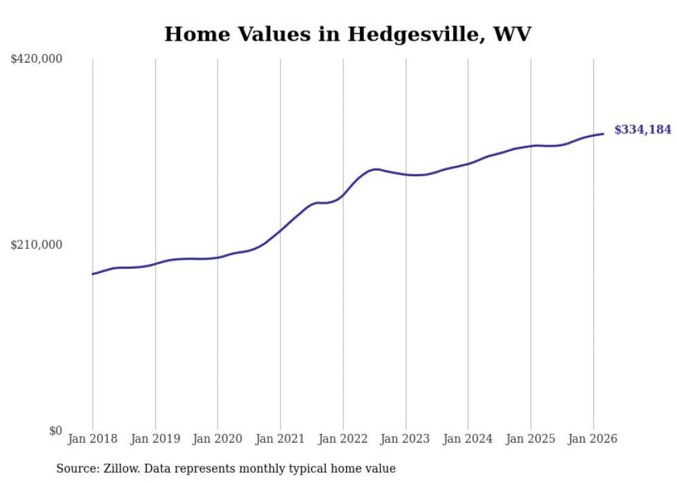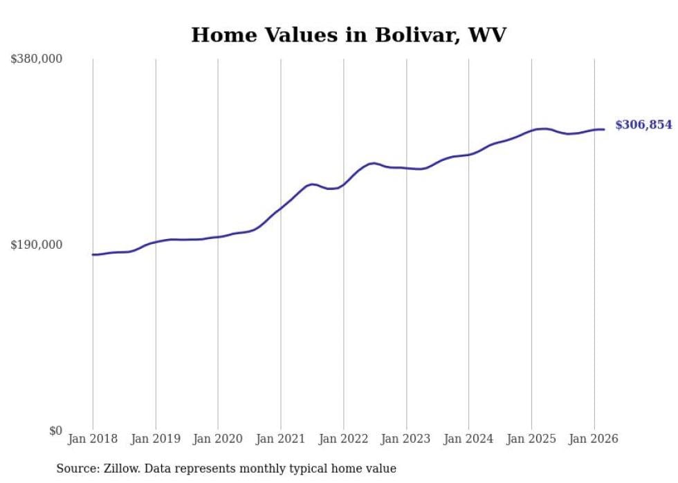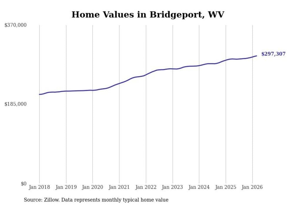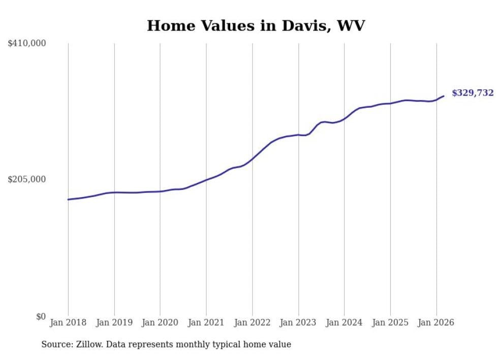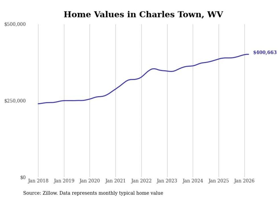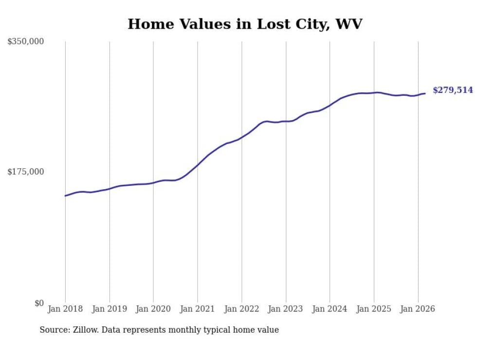 compiled a list of cities with the most expensive homes in West Virginia using data from . Cities are ranked by the Zillow Home Values Index for all homes as of March 2026. The charts in this story were created automatically using .