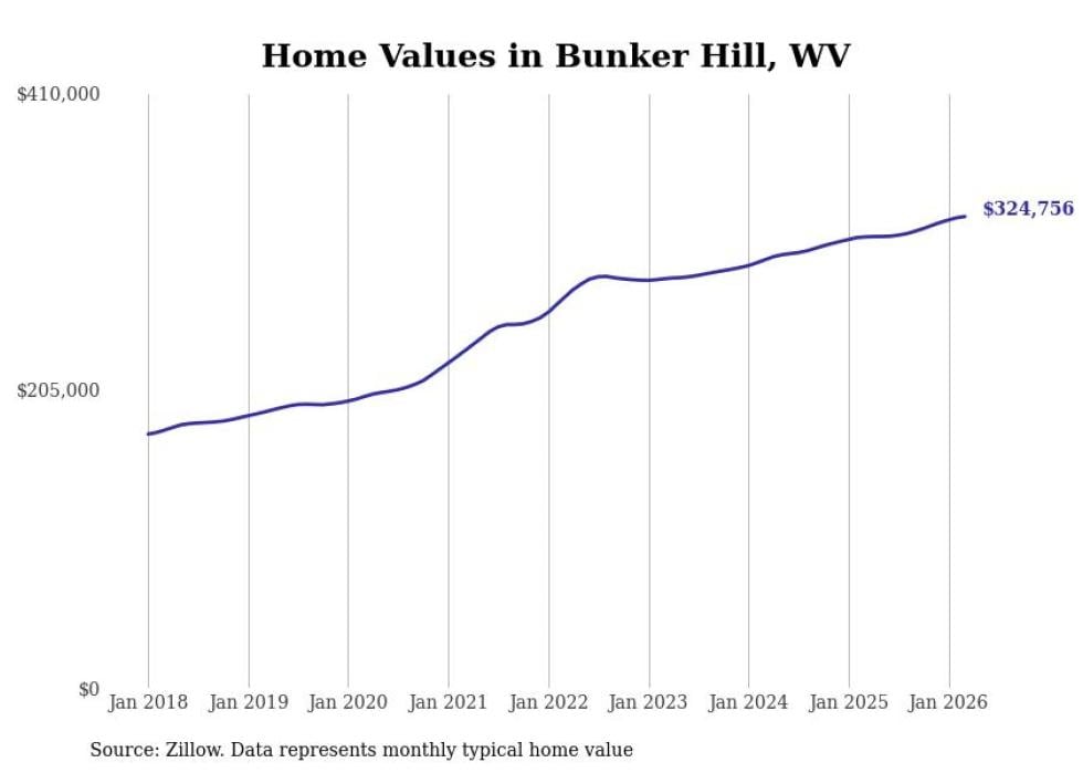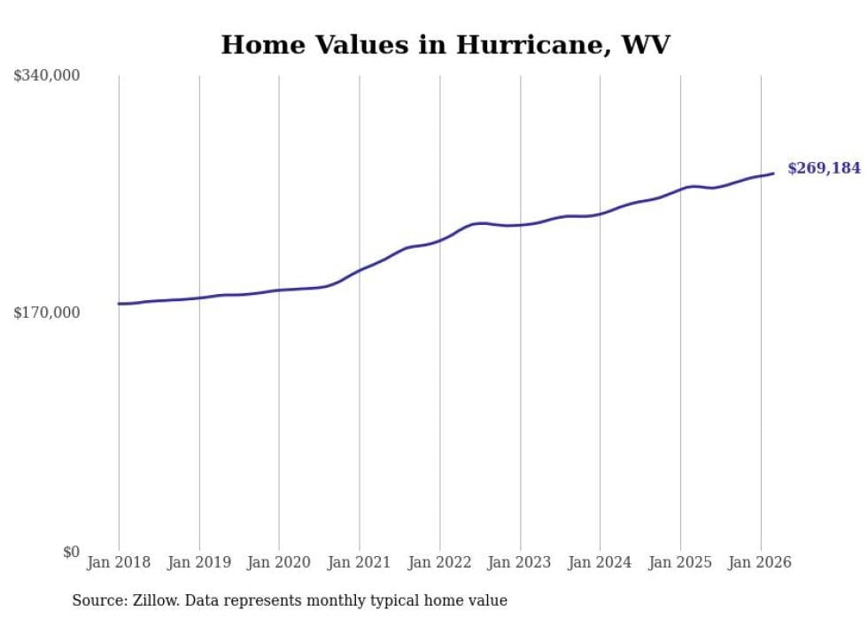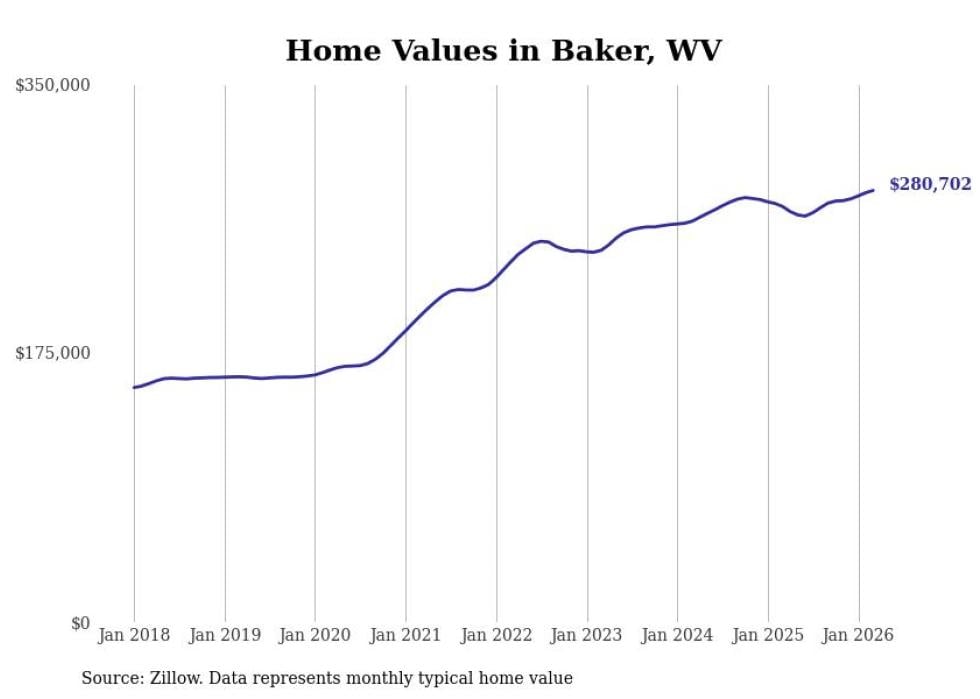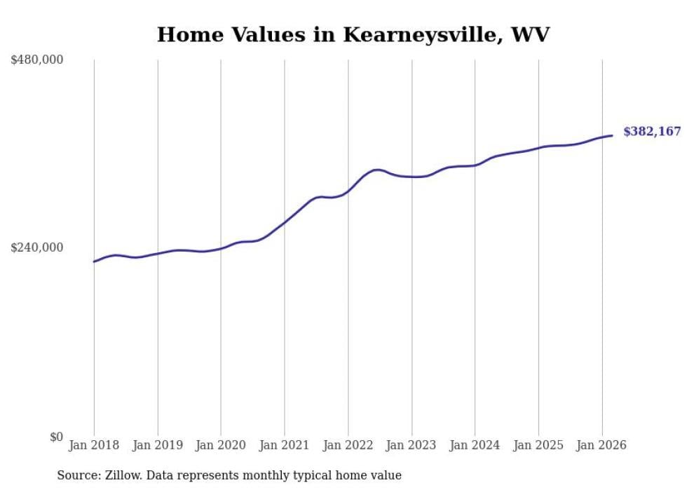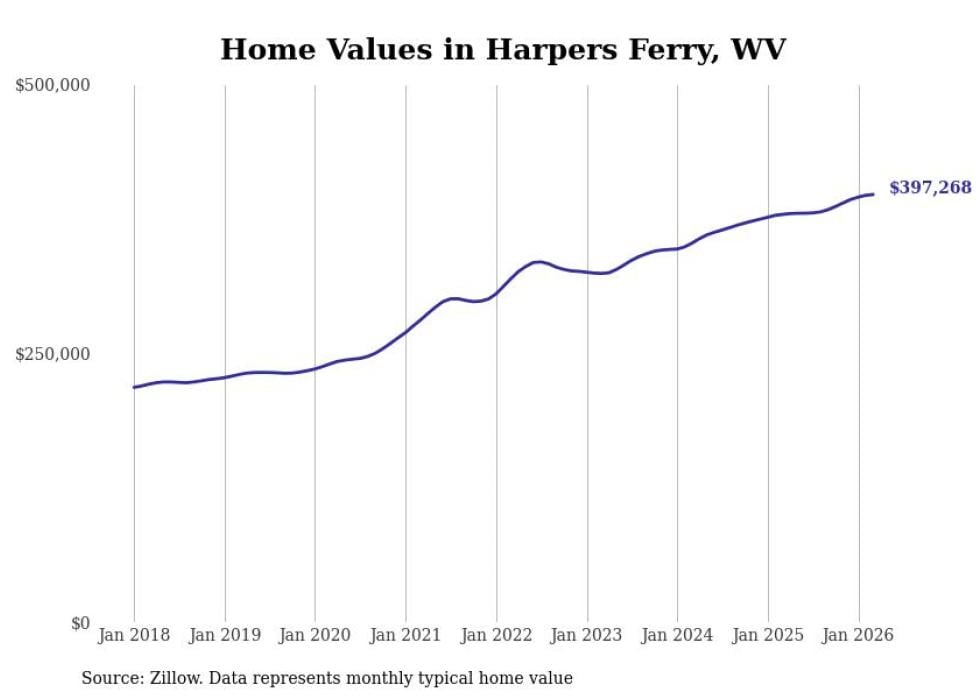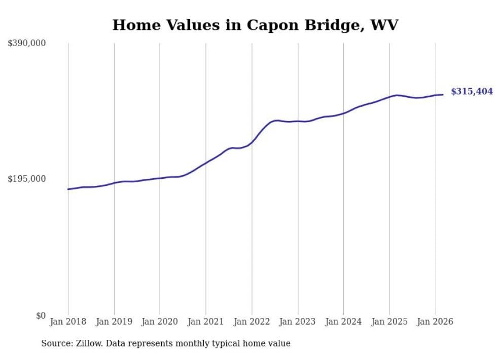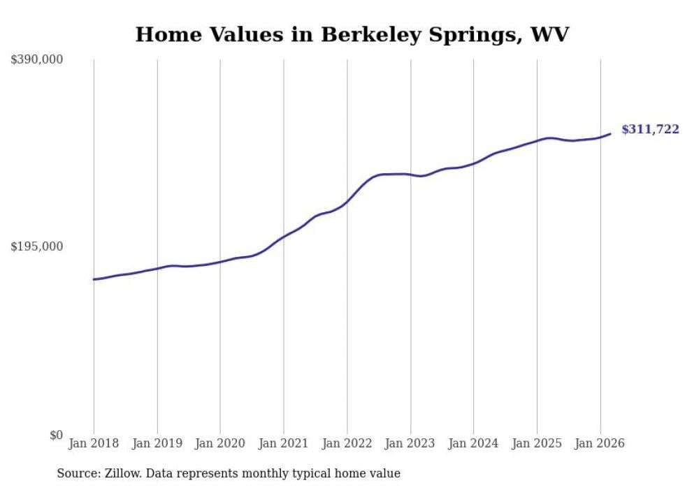 compiled a list of cities with the most expensive homes in West Virginia using data from . Cities are ranked by the Zillow Home Values Index for all homes as of March 2026. The charts in this story were created automatically using .
