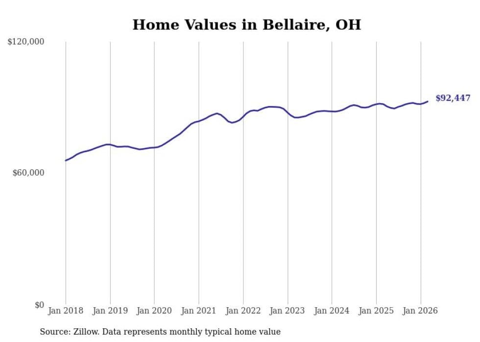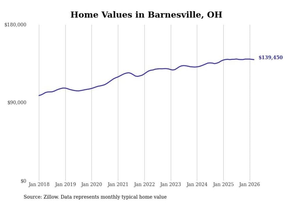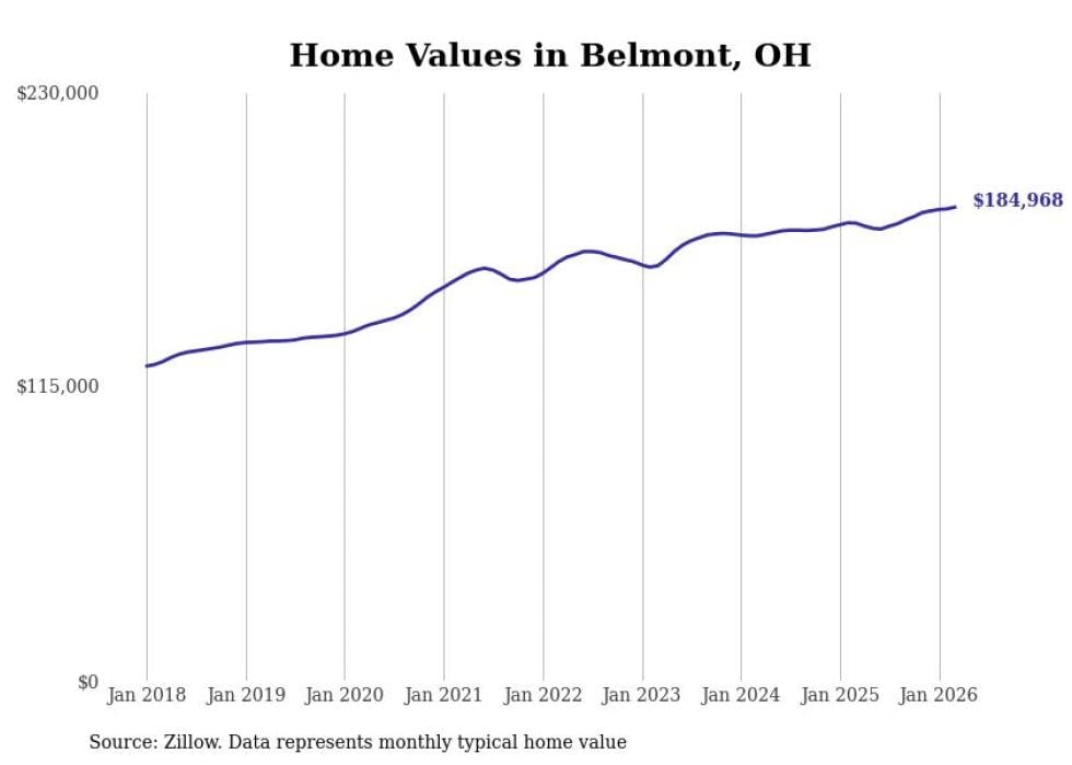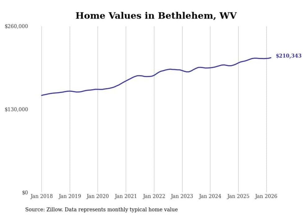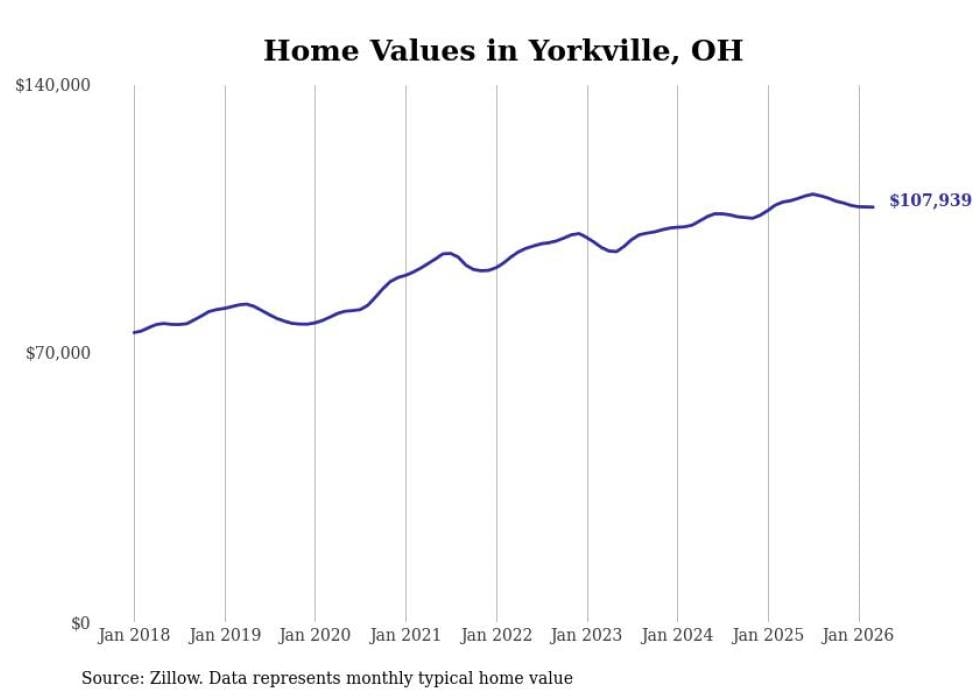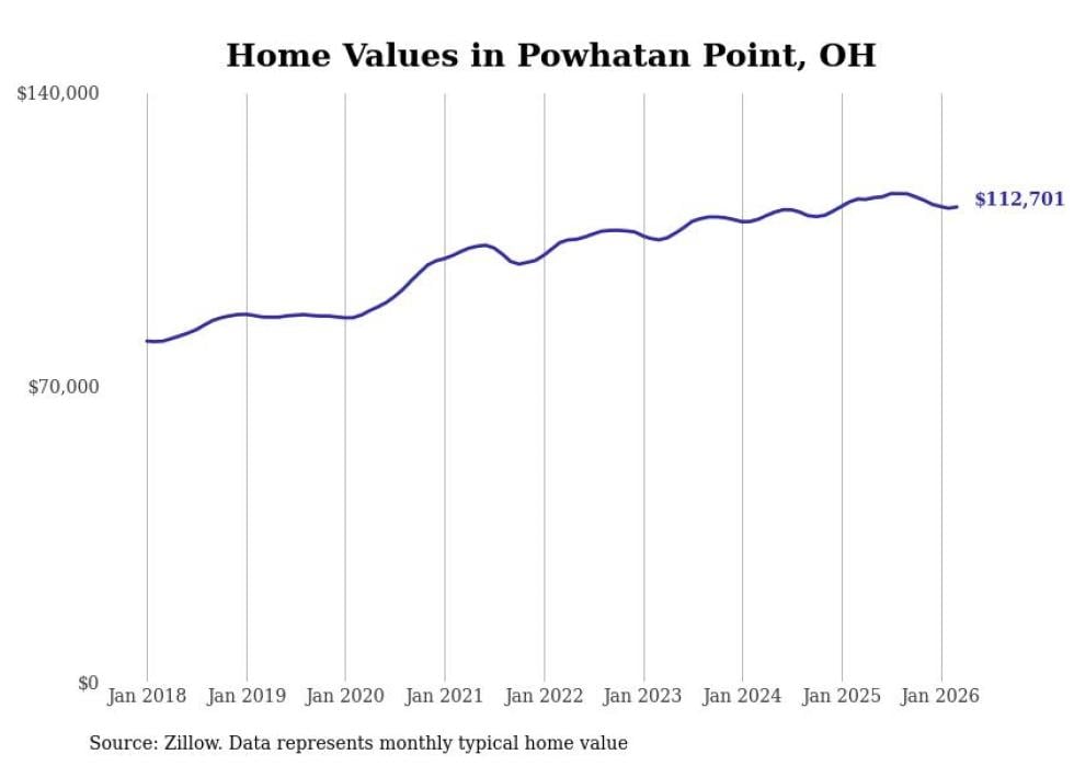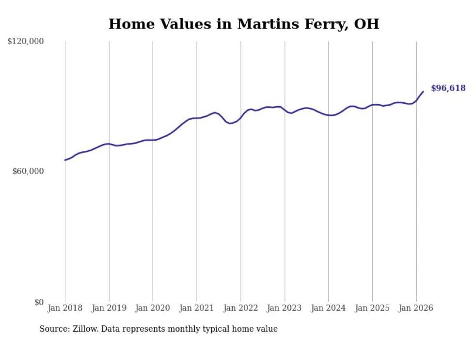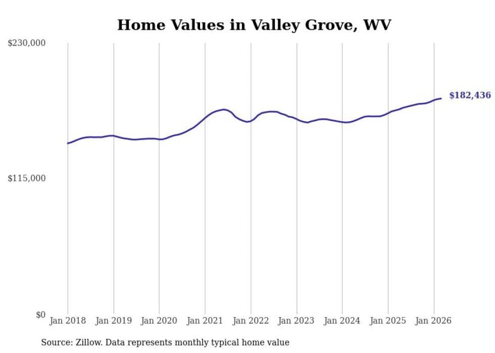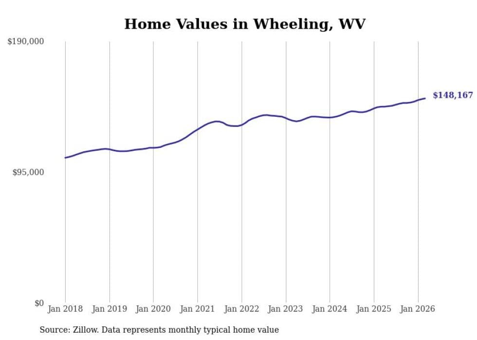 compiled a list of cities with the most expensive homes in the Wheeling metro area using data from . Charts show the monthly typical home value since January 2018. All 27 cities and towns with data available were included in the list.