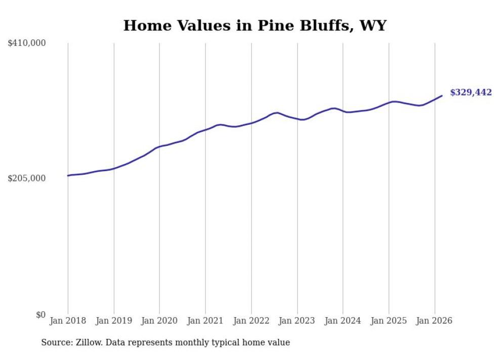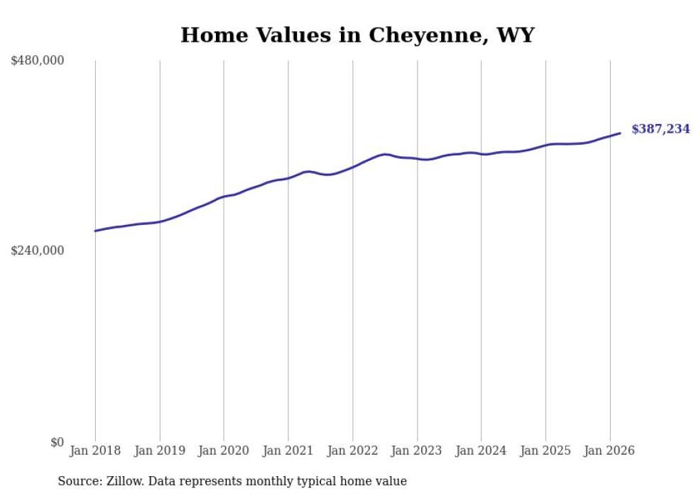 compiled a list of cities with the most expensive homes in the Cheyenne, WY metro area using data from . Charts show the monthly typical home value since January 2018.